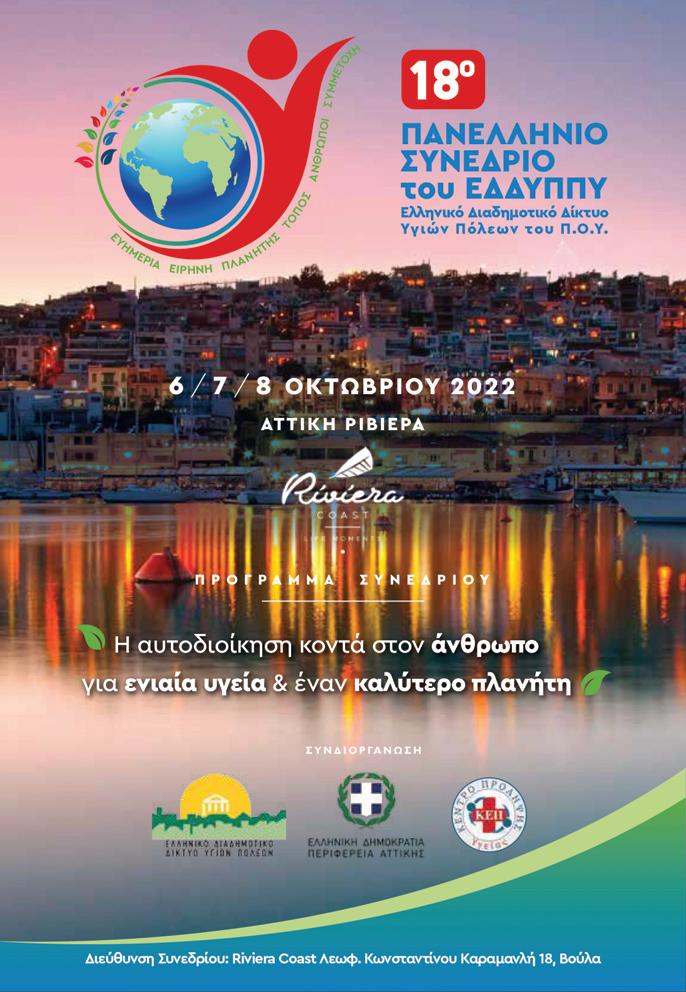 και του επιχειρείν – μια βράβευση η οποία εφεξής θεσμοθετείται σε ετήσια βάση από το ΕΔΔΥΠΠΥ. Το συνέδριο, που θα διεξαχθεί στην Αττική Ριβιέρα και συγκεκριμένα στο Riviera Coast επί της Λεωφ. Κωνσταντίνου Καραμανλή 18 στη Βούλα, αναμένεται να παρακολουθήσουν εκα τοντάδες επαγγελματίες υγείας και εκπρόσωποι της αυτοδιοίκησης από όλη την Ελλάδα, ενώ οι εργασίες του θα μεταδίδονται υβριδικά και μέσω live streaming από το κανάλι του ΕΔ ΔΥΠΠΥ στο YouTube. «Η Αυτοδιοίκηση είναι το θεμέ λιο της Δημόσιας Υγείας» ανέφερε ο Περιφερειάρχης Αττικής και πρό εδρος του ΕΔΔΥΠΠΥ Γιώργος Πα τούλης σε δηλώσεις του για το επικείμενο συνέδριο, τονίζοντας ότι «στη διάρκεια της πανδημικής κρίσης, οι Περιφέρειες και οι Δήμοι βρεθήκαμε στην πρώτη γραμμή της μάχης για την προ άσπιση της υγείας των πολιτών». Όπως υπογράμμισε,