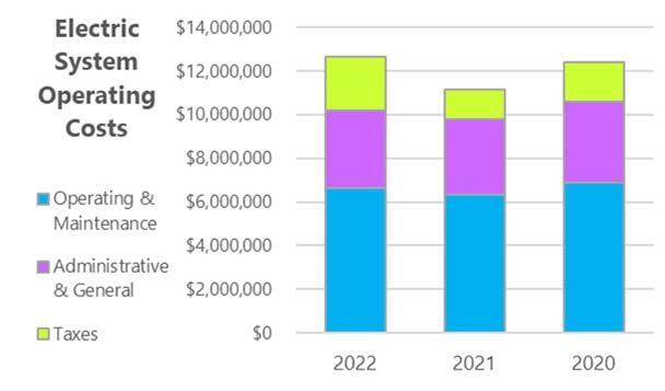 2022 2021 2020 2019 2018 Operating revenues (000s) Energy sales 78,189 $ 52,639 $ 42,512 $ 53,323 $ 51,787 $ Other 2,280 1,506 1,466 1,559 1,099 Total operating revenues 80,469 54,145 43,978 54,882 52,886 Operating expenses (1) Power costs 53,289 31,931 29,101 34,410 33,313 Operations and maintenance 6,633 6,339 6,862 6,231 6,511 Administrative and general 3,554 3,452 3,753 3,825 4,558 Taxes 2,448 1,380 1,787 2,785 2,721 Pension Expense (744) (1,739) (770) (727) (975) Total operating expenses 65,180 41,363 40,733 46,524 46,128 Investment income (2) 422 21 83 266 229 15,711 12,803 3,329 8,624 6,987 - - - (3,200) (2,200) Net revenue for debt service coverage 15,711 12,803 3,329 5,424 4,787 Senior lien debt service 974 976 976 1,178 2,053 Net revenue available for capital14,737 $ 11,827 $ 2,353 $ 4,246 $ 2,734 $ Debt service coverage ratio (3) 16.13x13.12x3.41x4.60x2.33x