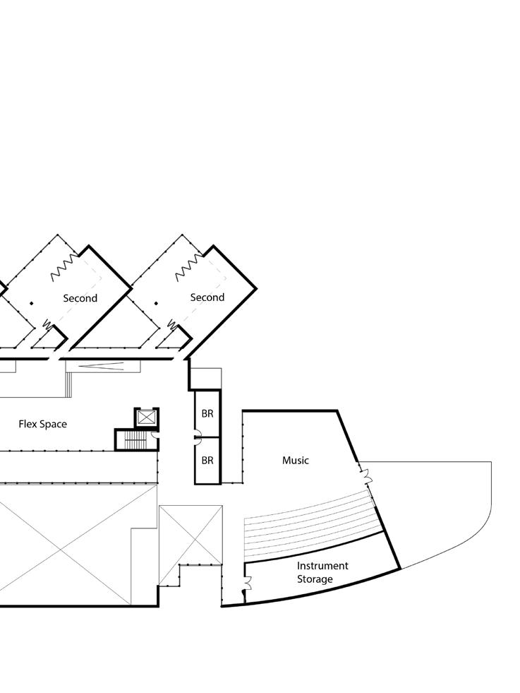 The new Indianola Informal Elementary School provides progressive-style education to K-5 children in Columbus. Playing on the intersection of city and nature: public areas face the busy street, shielding classrooms from distraction while classroom and library views are directed toward the lush ravine. Traversing the building, one steps down through four domains, observing active collaboration between students. Dynamic classrooms with collapsible glass doors open up to merge interior and exterior discovery.