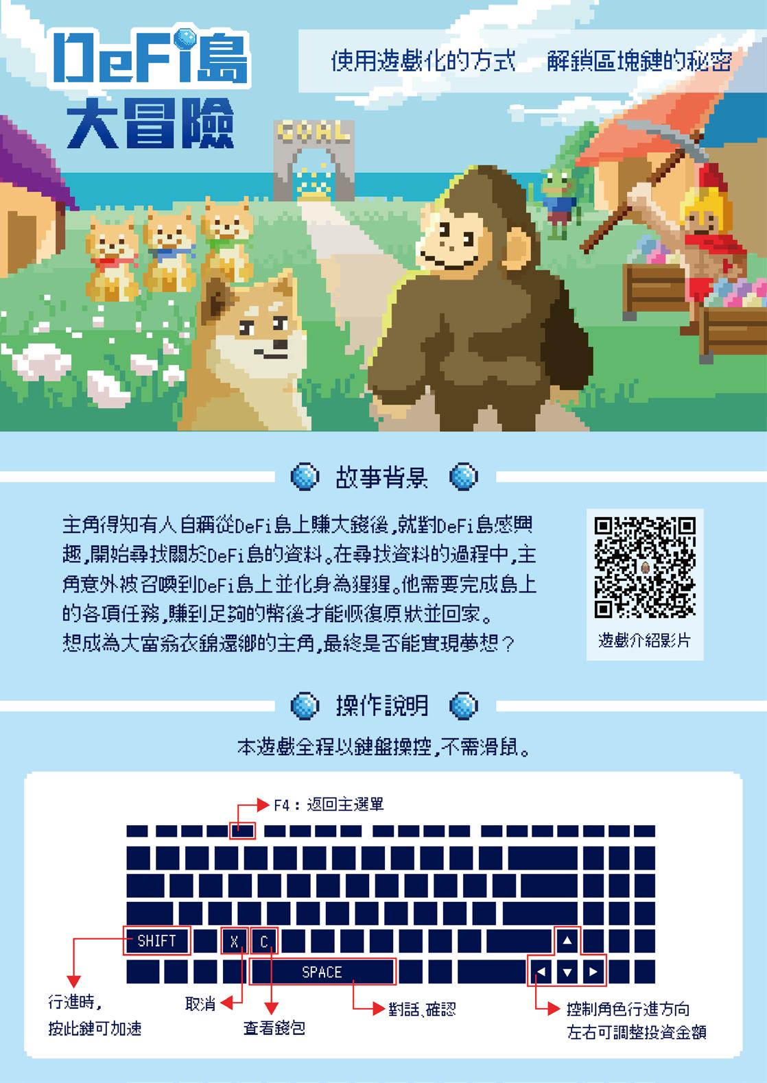 介紹手冊 為遊戲專題製作一份「導覽 手冊」,讓玩家在體驗前可 以先了解故事背景、操作方 式或觀賞遊戲的介紹影片。 背面則是遊戲中精采畫面的 截圖,並搭配俏皮的對話方 式,帶玩家認識這款遊戲。 8