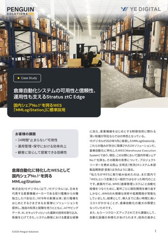 ãã®ãããªçŸå Žã§æ±ããããå¯çšæ§ã»ä¿¡é Œæ§ã»éçšæ§ã® æ¡ä»¶ãæºãããµãŒããŒãšããŠãYEããžã¿ã«ã§ã¯ 2024 幎 8æãMMLogiStation ãæèŒããæšæºæ©ã«ããã³ã®ã³ ãœãªã¥ãŒã·ã§ã³ãºã®Stratus ztC Edgeãæ¡çšããã