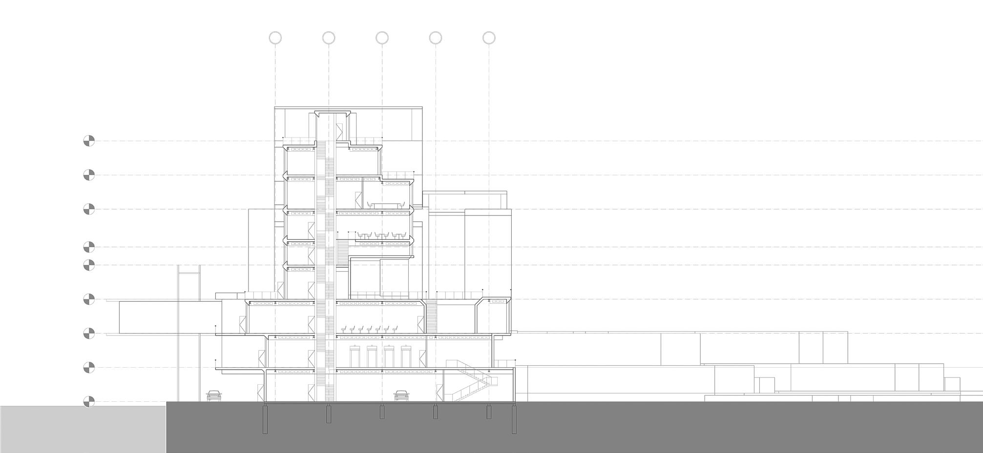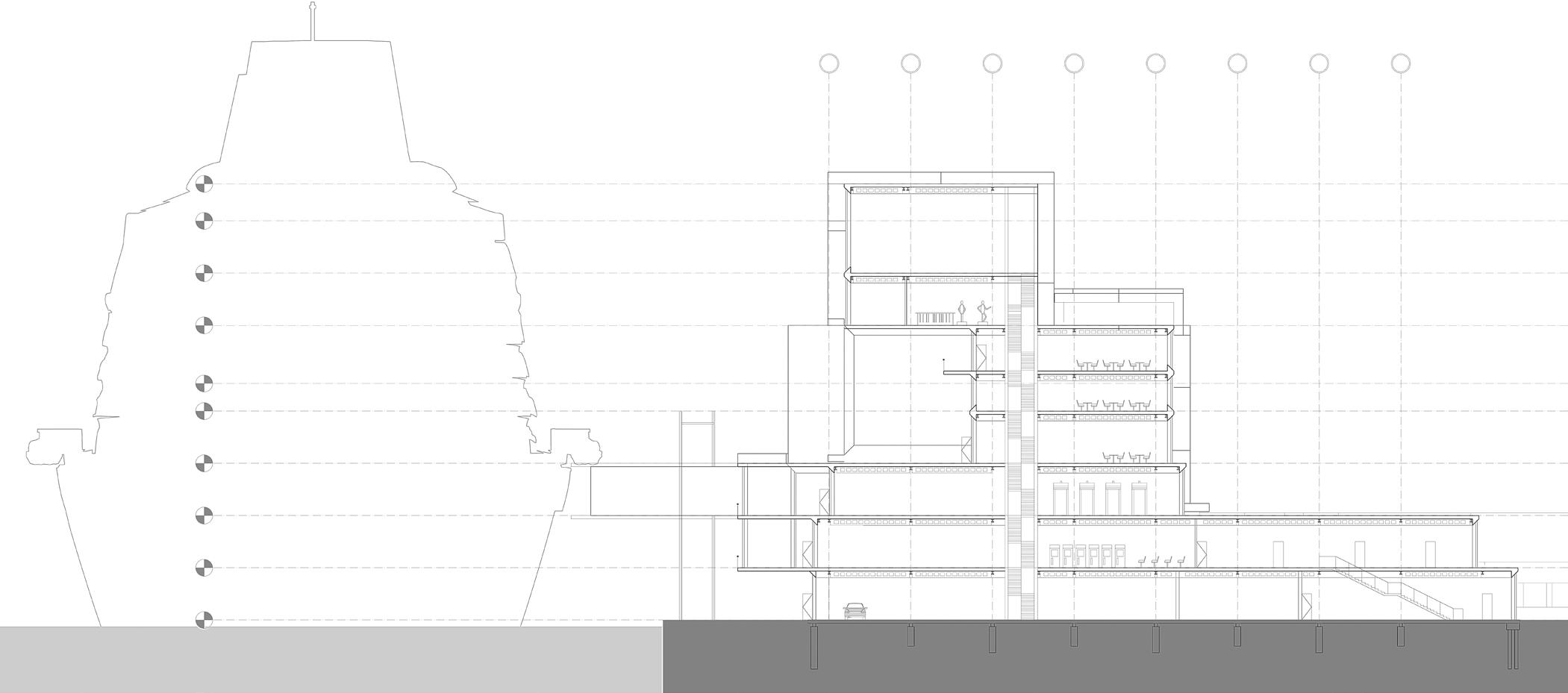 Clockwork Section reveals the drastic condition changes in different parts of the building. But rather than interfering with each other they work together as one system.