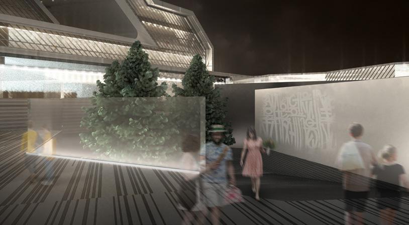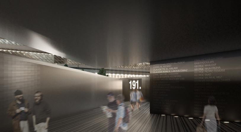 The Memorial is made to be a mirror image of the terminal, following the same 30-6090 degree typology of the terminal. The memorial is designed to be a heart-warming gathering place for people who come here to share memories and pay homage to their loved ones. It is also a safe place for local artists to express respect in the form of their art.