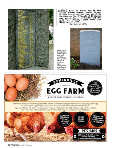 Stanley’s name is recorded on the Malvern War Memorial – a beautiful granite memorial in the shape of a Victoria Cross –which is located in the Malvern Cricket Ground.
