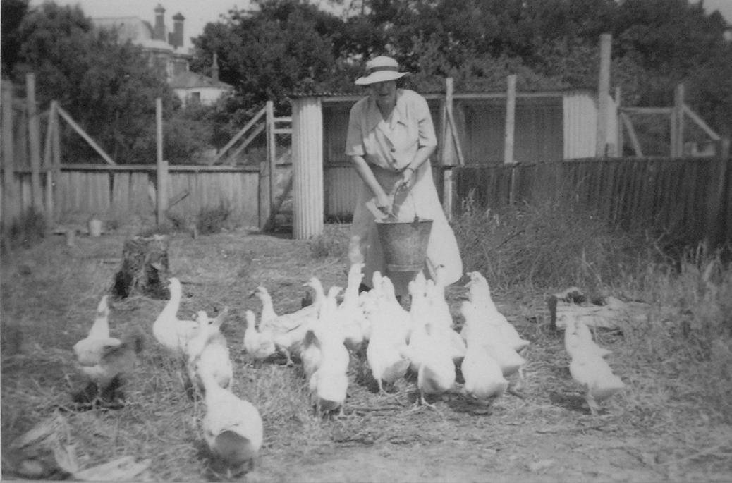 Above: Gertie Luxton feeding the ducks. Picture: Coolart Collection
