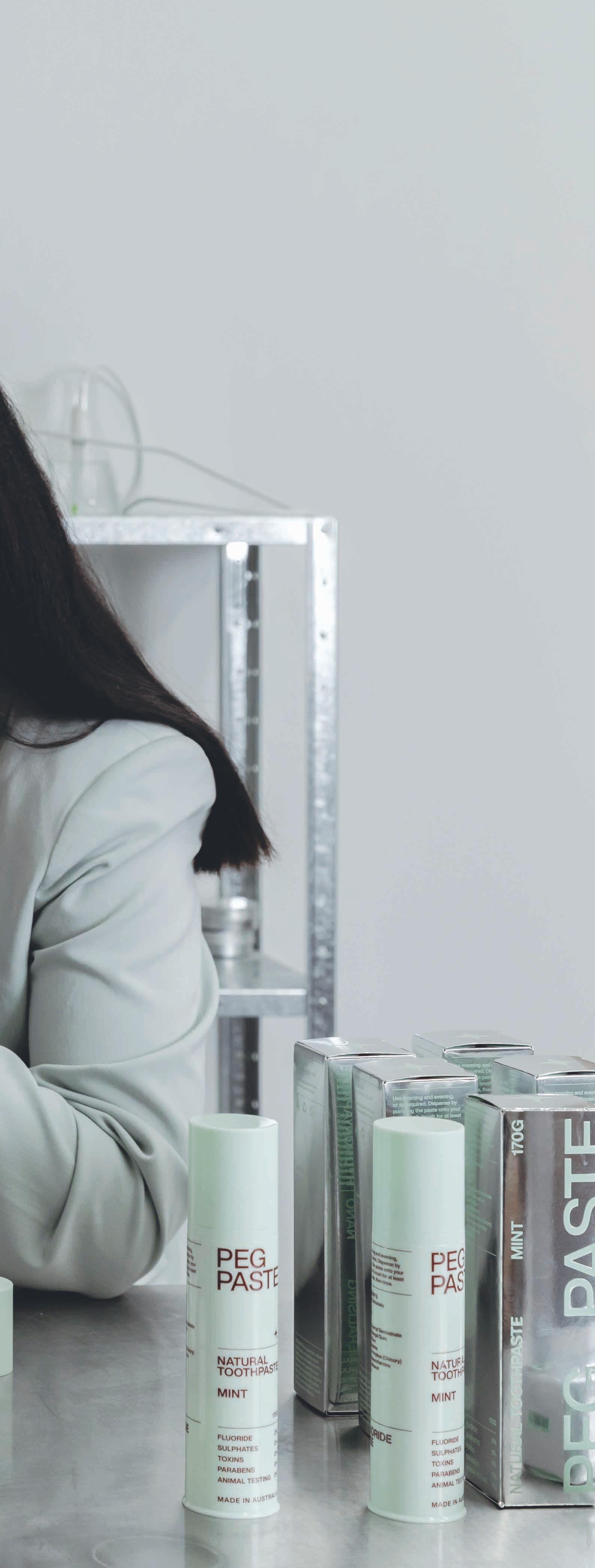 The Peg journey began in lockdown when Kagan was pregnant with her first child. Naturally, her focus was on health and using low toxicity natural products. Fluoridated toothpaste was a concern. Not finding any high-performance, natural alternatives on the market, Kagan decided to begin the development process of her own fluoride-free formulation. The name Peg was inspired by a family expression from childhood, “Wash your toothy pegs (teeth).”