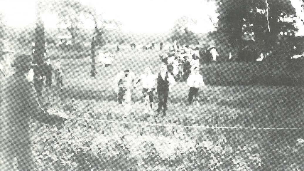 Above: Athletes sprint towards the line featuring R. A. Firth, E. Connell, P. White and L. Garlick