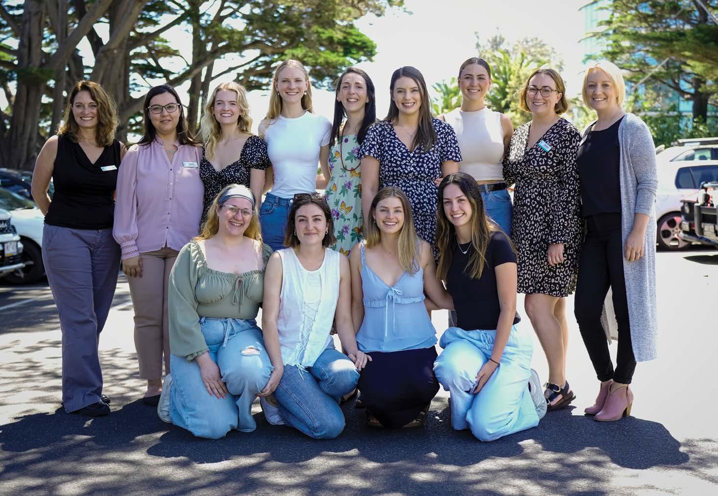 Image from left: Colleen White, Marie Salehi, Summer Kelly, Nicole Rust, Kristen Bruce, Bianca Jehu, Alanah Sbisa, Aimee Churcher, Melanie Oliver. Ground from left Emma Perazza, Quincy Seagren Hughes, Irene Thorson, Emily Larken