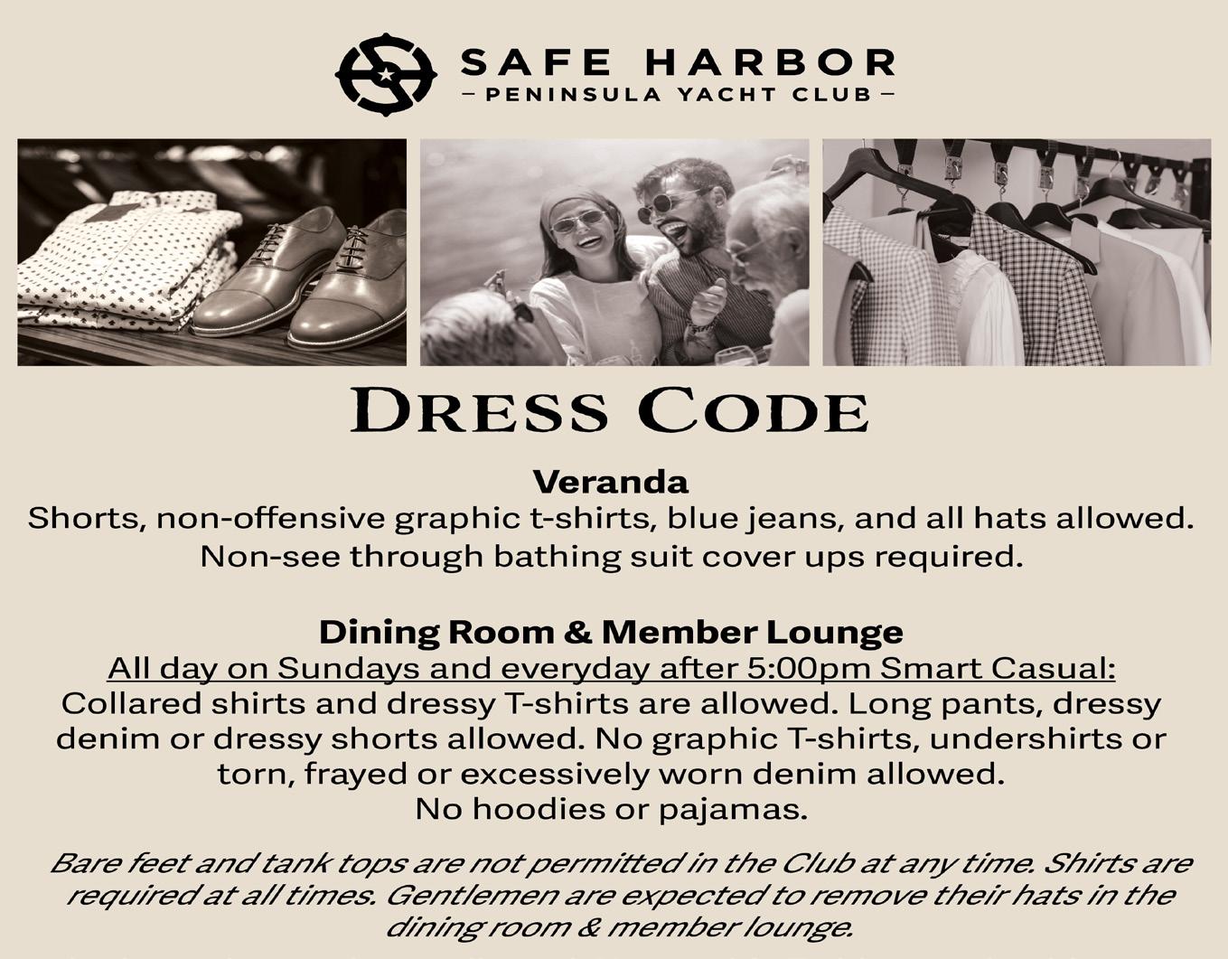 At The Safe Harbor Peninsula Yacht Club, we feel that it's important to keep our members informed on all matters that relate to them and the club. With a place that has so much going on, it's easy to forget the little things like Dress Code, Reservation Maximums, and leashing up our furry friends!
