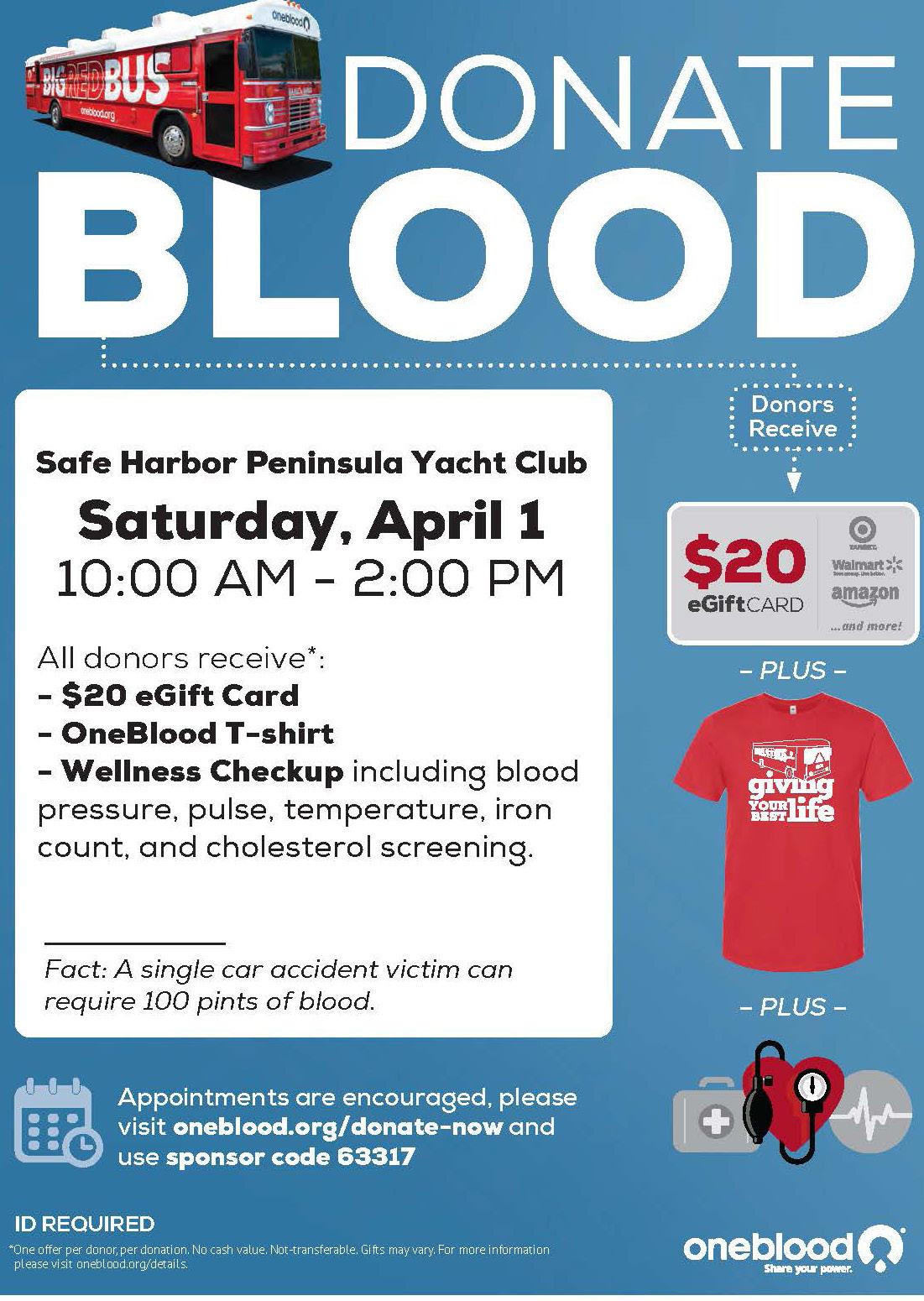 According to the American Red Cross, every two seconds, someone in the U.S. requires a blood transfusion. There are many reasons that require. You can help be the difference in someone's medical journey. All donors receive a $20 eGift card, OneBlood T-shirt, and a wellness checkup.