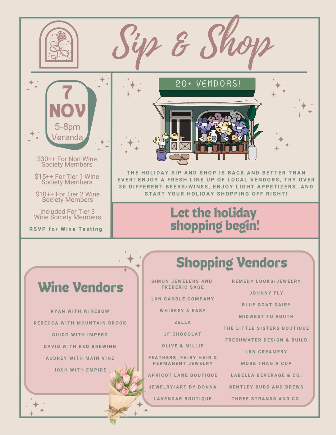 November 7 Sip & Shop th