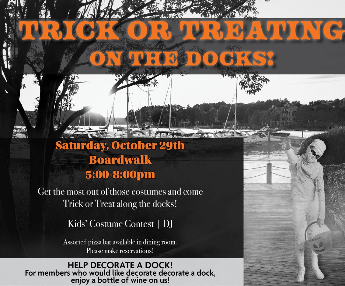 To end the October calendar we have the adult costume party (28th) and the kids Trick or Treating on the docks (29th).