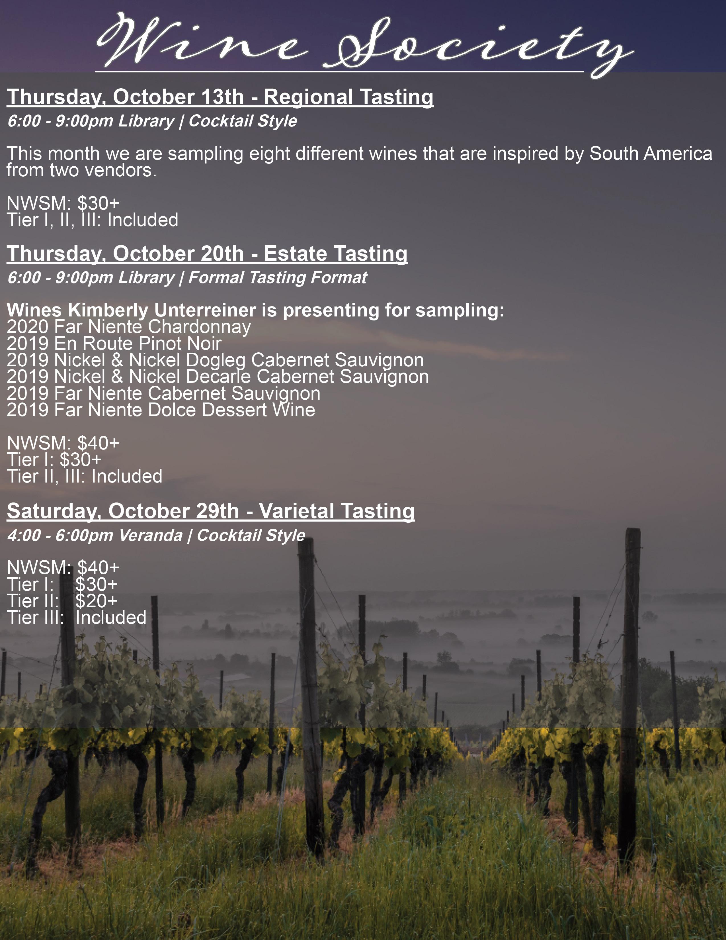 Wine Society Tasting 6:00-9:00pm