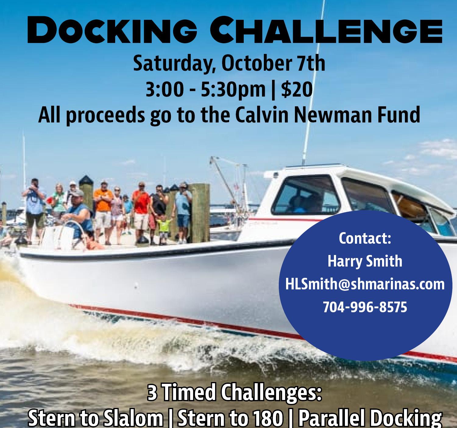 Calling all boat drivers! It's time to show us what you got! That's right, we are hosting a Docking Challenge. You've heard people say that anyone can drive a boat on open waters but a true boat captain is determined by how well they can park their boat. There will be three timed challenges to test your skills. All proceeds will go to the Calvin Newman Fund that promotes boating safety to all Lake Norman boaters.