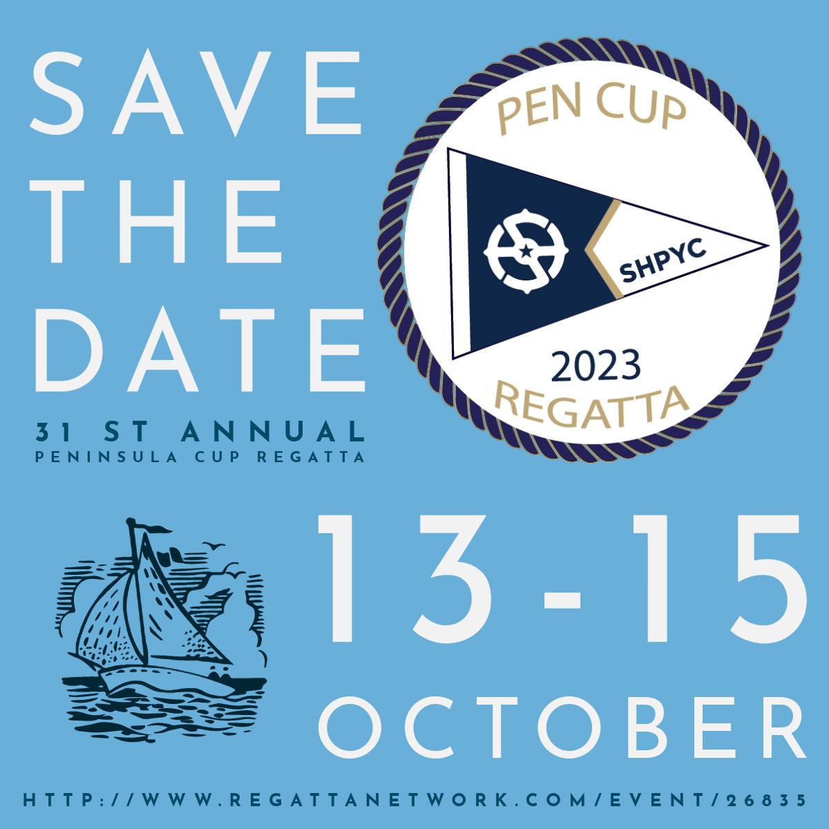 31st Peninsula Cup – the “Pen Cup” is held October 13 – 15 with both on-water and on-shore activities for both competitors and members. This will be a great weekend for all with a Member Mixer on the 13th, the Land & Sea dinner, with a band, on the 14th, and a BBQ on the 15th. Oh, and a lot of sailing in between meals!