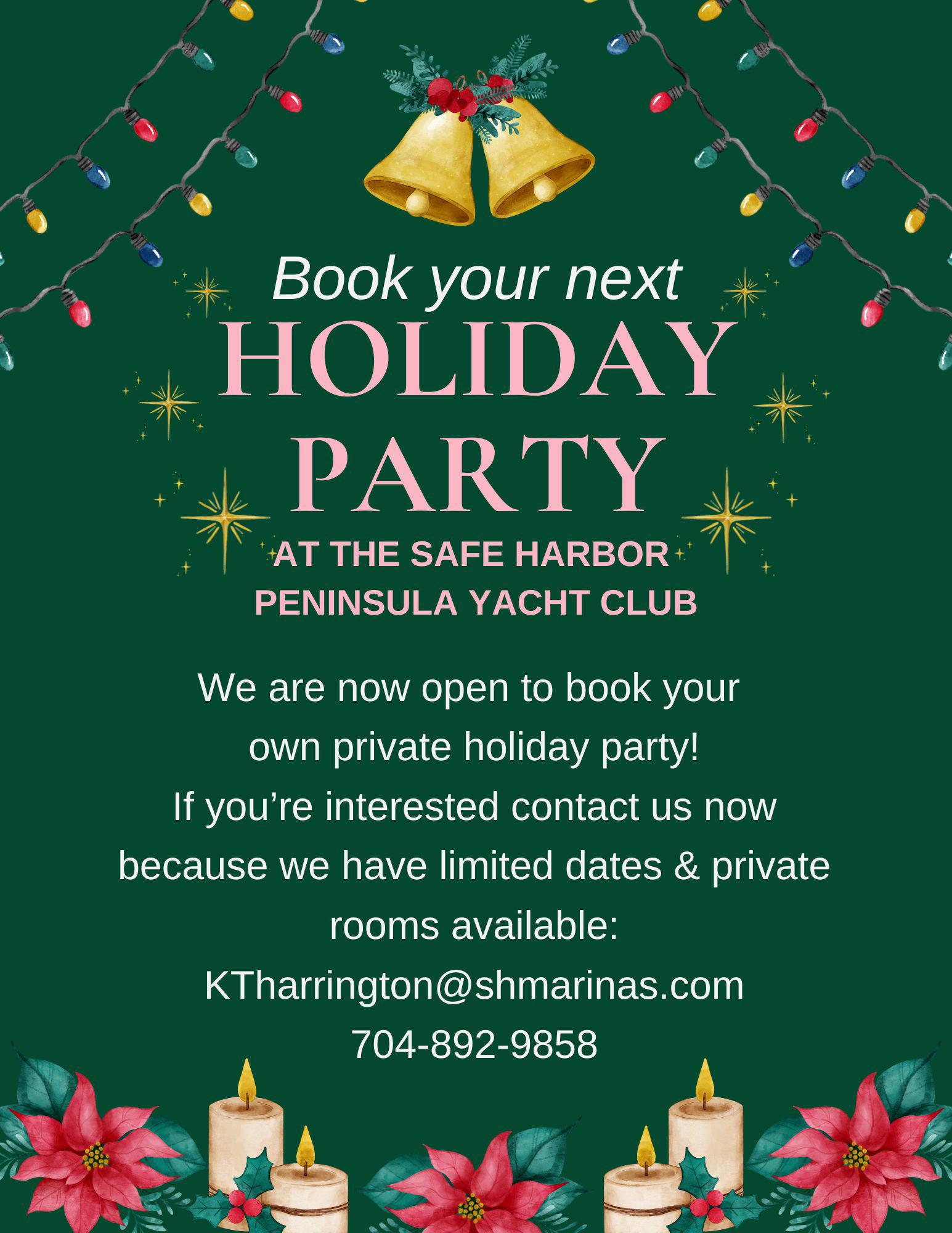 It's never too early to book your holiday catering or party with Kayla: KTharrington@shmarinas.com