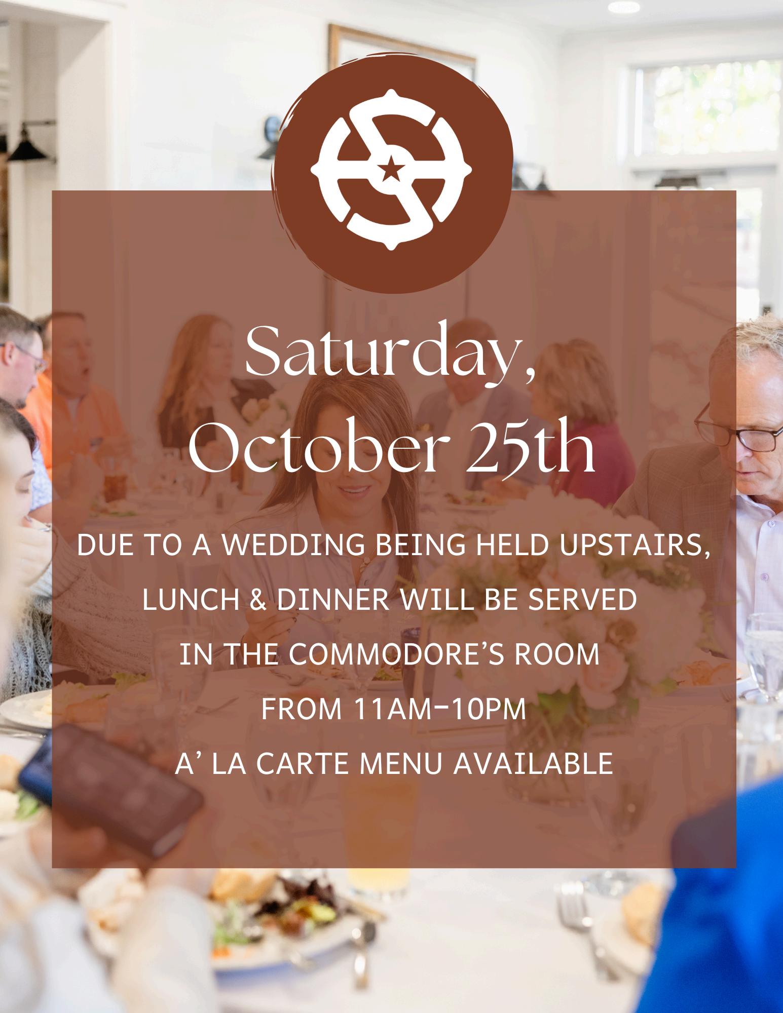 October 25 Member Dining in Commodore’s Room th
