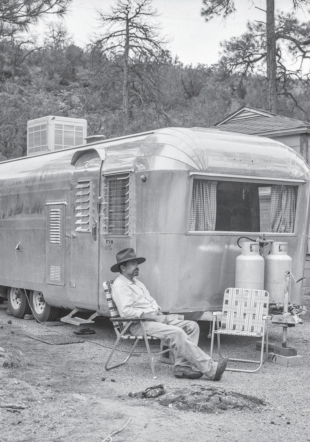 Image: Frank and his Airstream at Bandelier National Monument, 2001. Photo by Joseph Elliott.