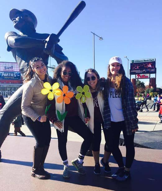 Beyond social events, our chapter also understands the importance of philanthropy and service. Our national philanthropy is Breast Cancer Education and Awareness. During the month of October, Zetas decorate Penn’s campus in its entirety with pink ribbons, chalk, Christmas lights, and paint adorning everything from the LOVE statue and the Button to Fraternity houses lining Locust Walk. We also pass out breast cancer ribbons and selfexam shower cards that month. Along with raising awareness at Penn, our chapter has spread our philanthropy’s mission beyond campus by venturing into Philly to help others Think Pink. Over the past few years, we have helped raise racer morale by volunteering at the Survivor’s Tent at the Philadelphia Race for the Cure and we have set a Panhellenic record by raising over $30,000 for Penn’s Relay for Life.