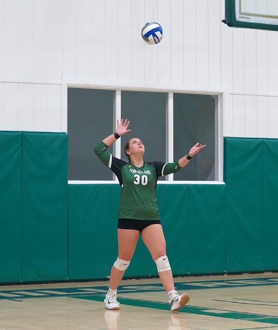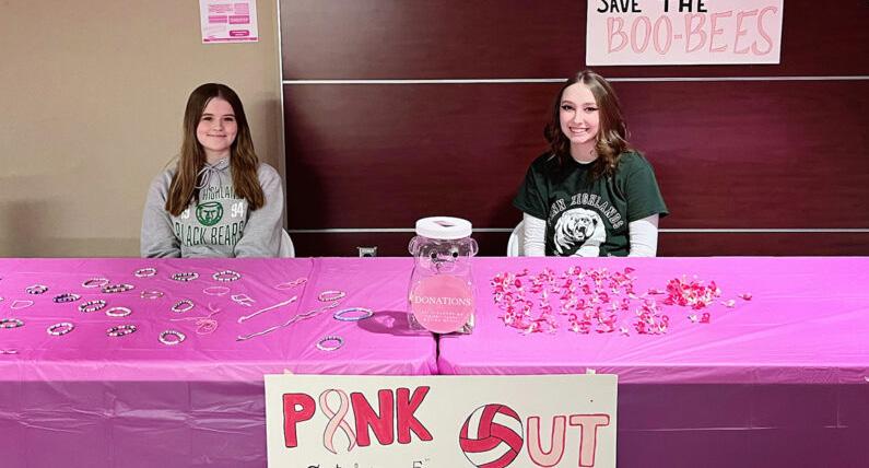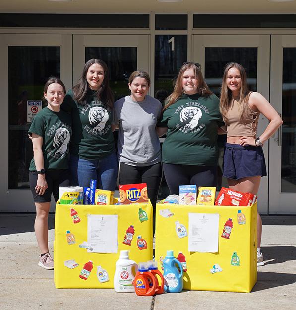 devoted their time and energy. Students engaged in a variety of activities to raise funds, including displaying awareness posters, hosting a bake sale, and selling themed items such as bracelets, ribbons, and shirts. The Women’s Volleyball team further amplified the message by wearing pink jerseys during their final home game, showcasing their commitment to the cause.
