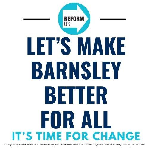 The Tories have Broken Britain. Labour will bankrupt Barnsley. A vote for either is a vote for more incompetence, dishonesty, and deceit. The twoparty system has failed. It’s time for a new party, it’s time for Reform. That start begins here in Barnsley on May the 2nd 2024.