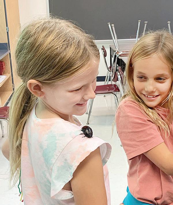 cockroaches to State College Area School District elementary school students, from front to back, Meadow Burke, Ava Richards, Charlie Zorger and Miles Laskowski during a recent science lesson.