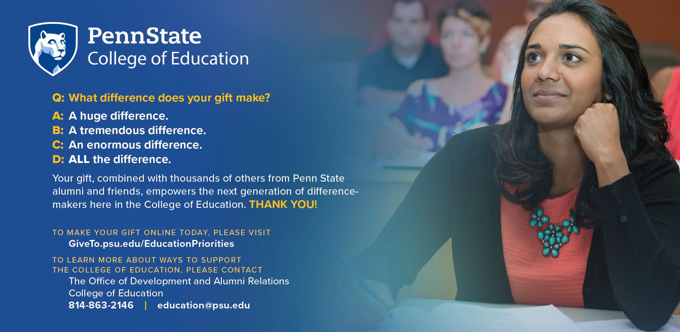 It’s also been said that we, as individuals and collectively, have the power to make change happen. For proof, look no further than the impact donors to the College of Education made during the Greater Penn State Campaign.