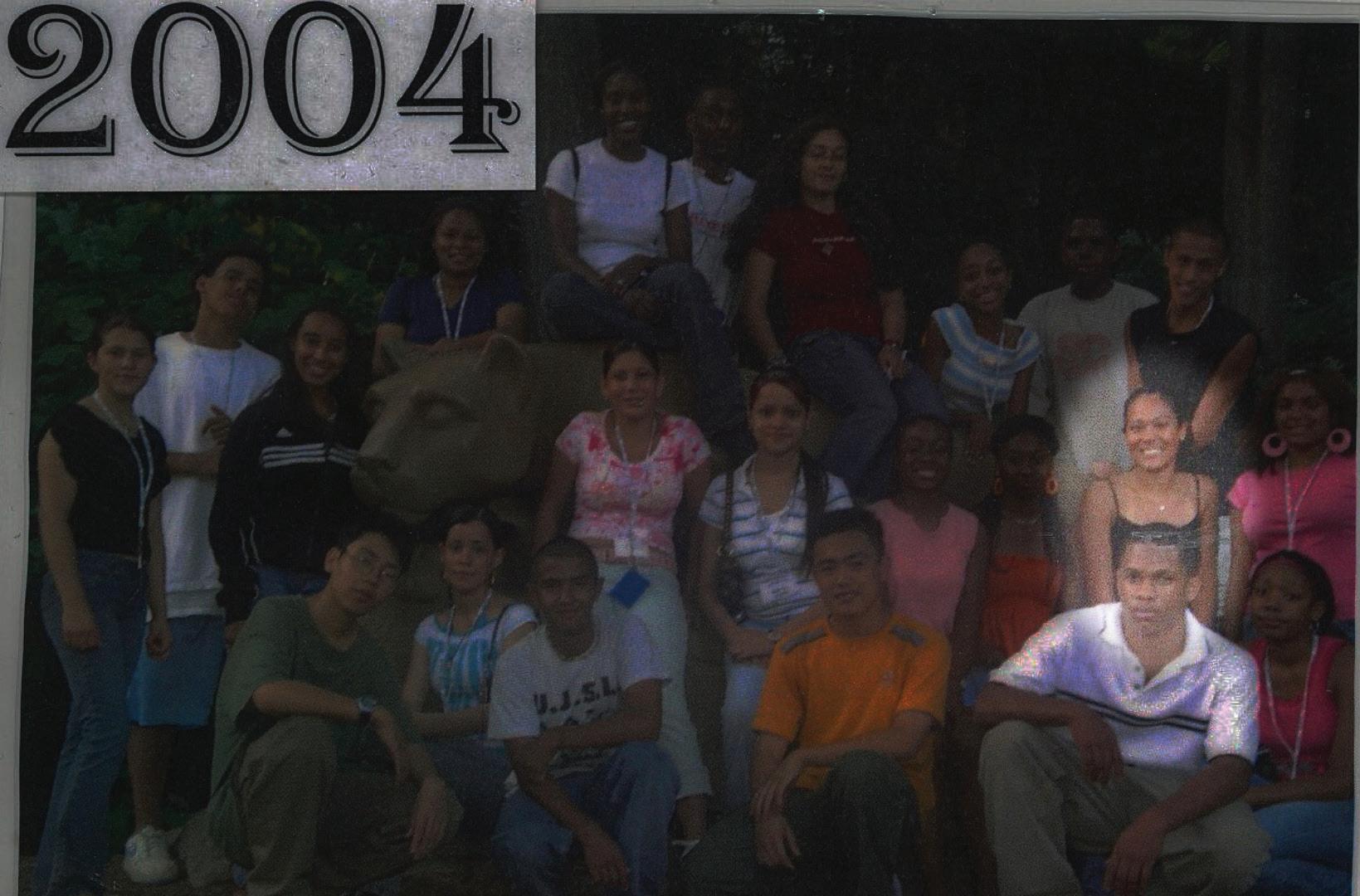 Above: Penn State College of Education alumna Kaela FuentesPacknick points to herself in a photo of students involved in the Summer College Opportunity Program in Education (S.C.O.P.E.) in 2004.
