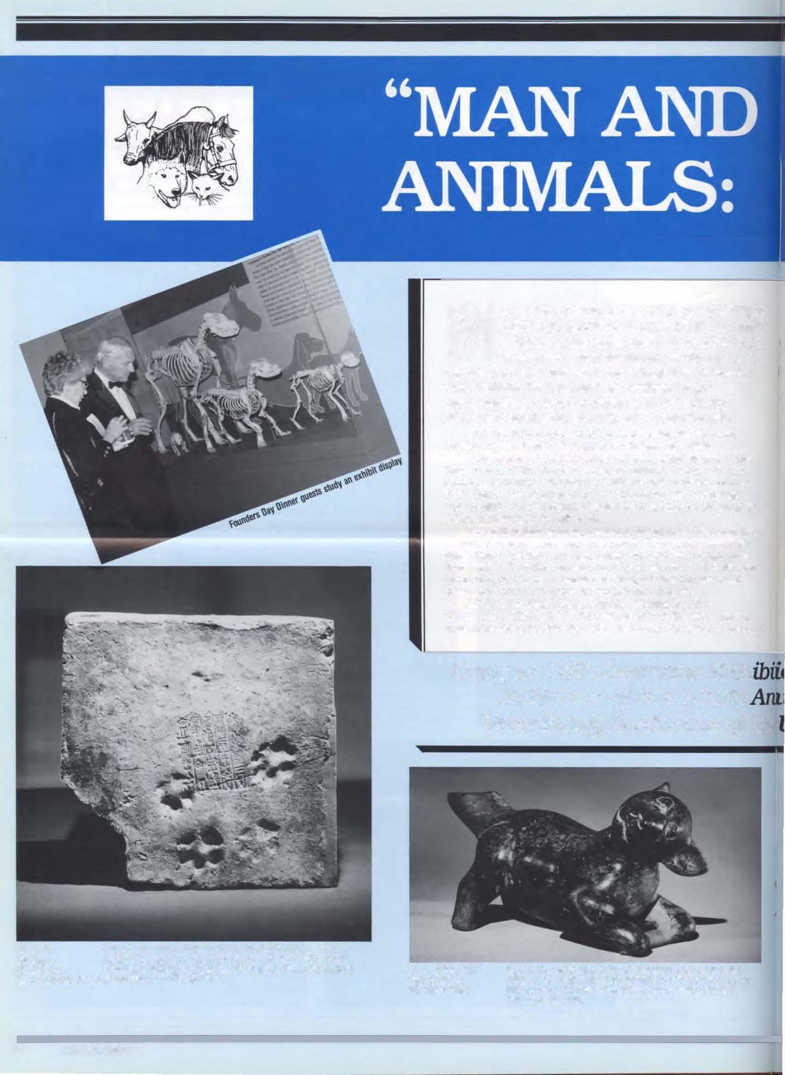tthisspecialconvocationmarking onehundredyearsofveterinarymedicmeatPenn,welookbackovera centuryofprogressinsemceto animals-beastsofburdenandlive-Mock,petsandsportinganimals.We aredelighted to begatheredatthe University Museumwherethemagni� ficente.xhib1tion ManandAmmalshasbeen mountedfortheoccasion. Pastachievementsand currentmedicaladvancesareherepresentedinthe uruquecontextof prehtstoncremainsofdomestic animalsandancientanifacto;fromtheMuseum, ailofthemattestingtothethousandsofyears duringwhichpeopleandbeastshavebeenliving, working,andchangingtogether.