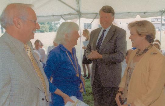 At the close ofthe evening I was very happy to have Betty Moran join me to make the announcement that Dr.Virginia Reefhas been appointed to a newly endowed chair,The Lila Griswold and Mark Whittier Allam Chair in Medicine at New Bolton Center.Some 20 years ago,Betty gave the School funds that were invested and grew.Now they permit us to establish the new Chair.The appointment is especially fitting for Ginny is a world renowned equine cardiologist and Betty Moran has had an abiding interest in the topic,giving the funds to establish not only the original heart station in 1963,but the cardiology suite in the Moran Family Wing ofthe new Scott Building.