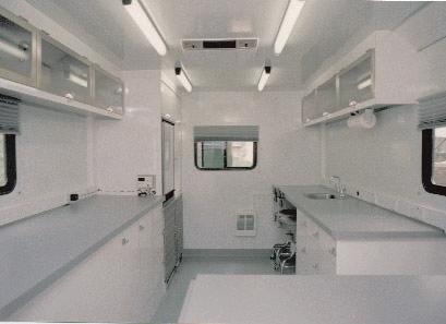 The new vehicle is impressive with a length of24 ft.,a width of8 ft.4 inches and a weight of7 tons.The Animal Bloodmobile,custombuilt to the specifications ofthe Penn Animal Blood Bank team,consists ofa Ford chassis with a V-10 engine and a custom-built body. The vehicle is equipped with a hydraulic exam table,a scale,a holding cage,sink and ample counter space for equipment.There are seats for three people.The new vehicle has storage space,including a compartment accessible from the exterior for dog food that is given to the donor’s owners.