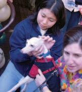 On November 12,faculty,staff and students participated in the Carnivale of the Dogs,held in par tnership with Commerce Bank.The event included a pet parade,live music,dog adoptions from the city shelter and even a paw reader. Veterinarians from the School answered questions at an Ask the Vet booth,and students and faculty members staffed the Penn M*A*S*H* Unit,where they helped children give injured stuffed animals a new “leash”on life.At left and bottom,staff and students help children repair their stuffed animals. At right,Ai Takeuchi,V’06,and Dr.Lillian Aronson, V’92,answer questions at the Ask the Vet booth.