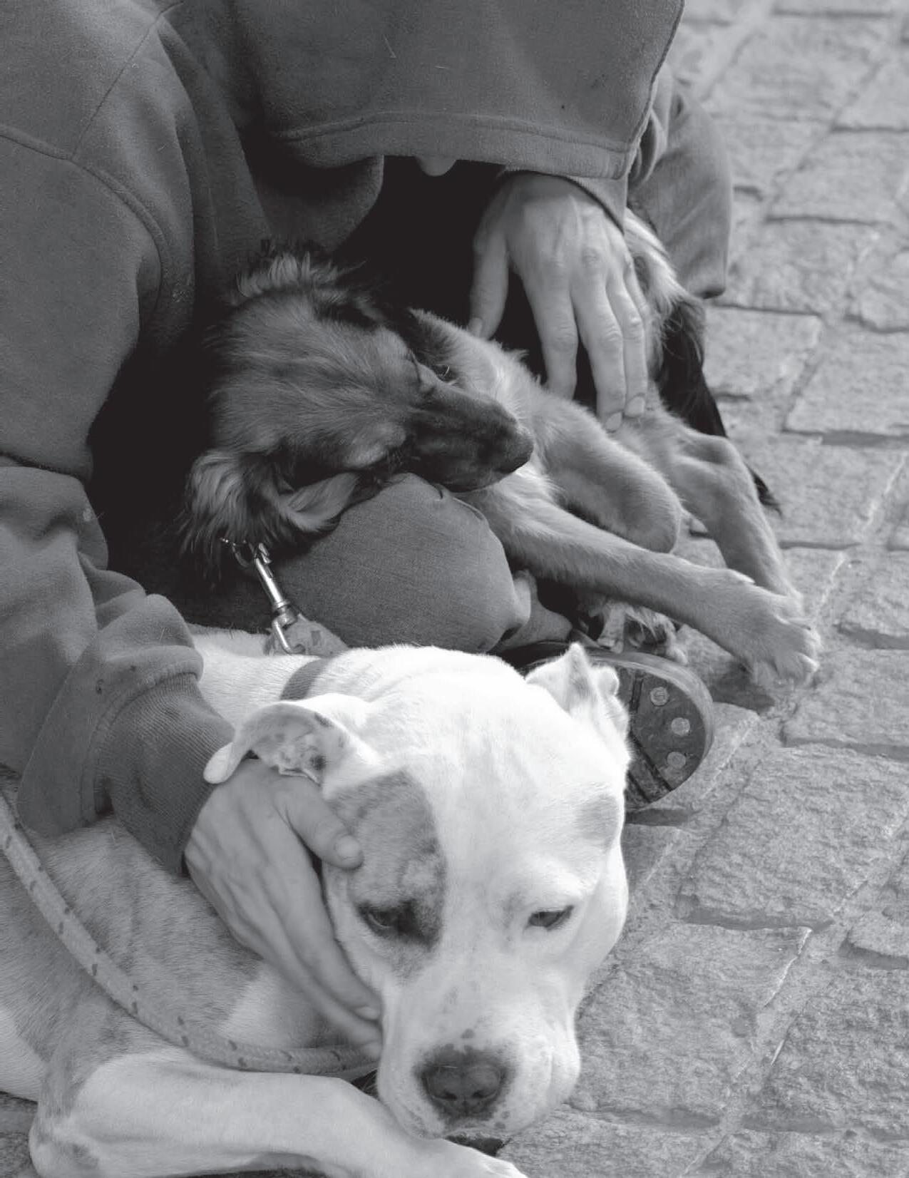 Why this dog? Why does seeing him make me happy every day? I’ve had personal reasons to think about the mutual love affair between dogs and humans. Fate brought my family not one, but two lost dogs in the last few months. My husband — always leaping at the chance to save animals — has a quick eye and a quick way with a motor vehicle. So when we found two dogs during family outings, I was able to get each dog into custody without delay or trauma. We then waited anxiously to see if our calls to local police, shelters, vet clinics, and our postings on the web would yield a happy ending; both did—both totally satisfying as the families and dogs were reunited. There was much speciesspecific evidence of happiness: tail wagging, leaping, hugging, and tears. So here’s what I find amazing: during the few days it took to find each dog’s family, we bonded to these two very different dogs (neither was an English Bulldog or even close!). It was a real loss to let each dog go but also a profound delight to see them snap back into place with their real families.