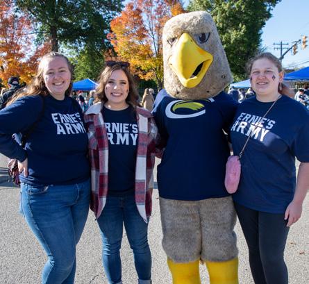 ERNIE THE EAGLE is Clarion’s Golden Eagle mascot, who hatched in 1979. He’s had many makeovers throughout the years to become the buff specimen you see today. You can see him strutting his stuff all over campus and at Clarion sporting events as he prides himself on being the biggest Golden Eagles sports fan.