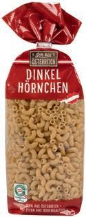 ICH BIN ÖSTERREICH DINKELNUDELN Hörnchen od. Spiralen pro 500 g Packung