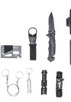 SURVIVAL-SET* bestehend aus z.B.: Feuerstein, Taschenlampe, Armband mit Kompass u.v.m. pro Set 9-teilig