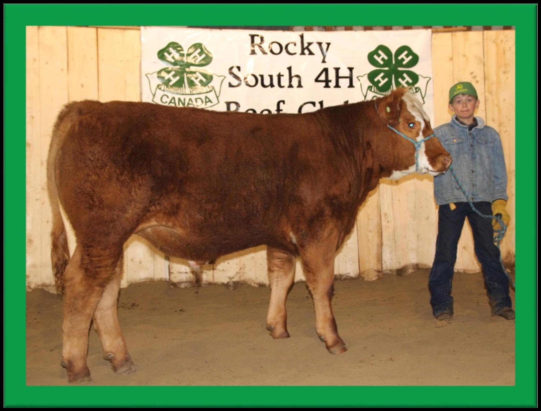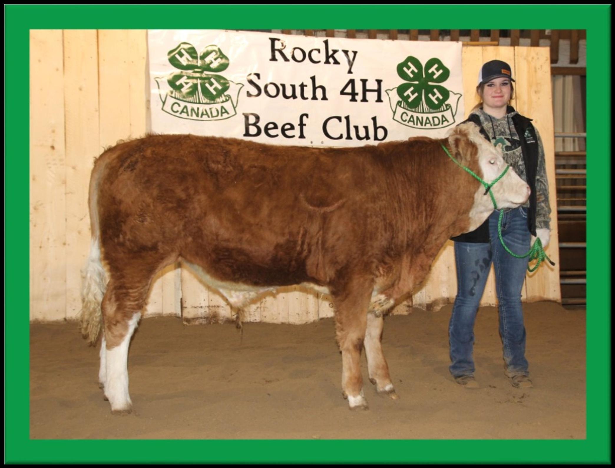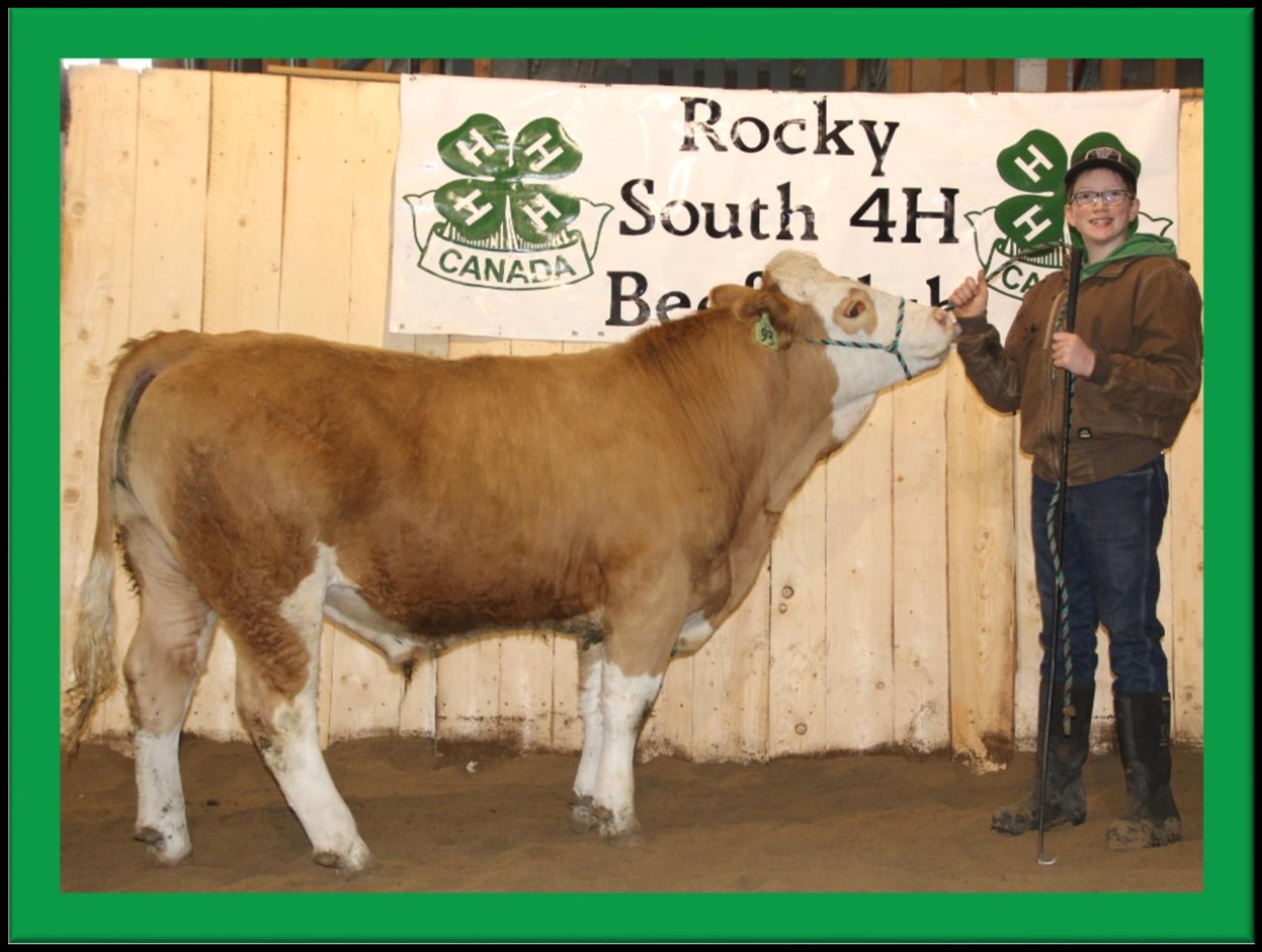 Hello everyone my name is Rayne Danielson, I am currently the treasurer for the Rocky South club and this is my third and final year in 4-H. My steer this year is named Kevin and he is a Simmental, Angus cross from our home raised herd. I would like to give a big thank you to all of our last year’s buyers and the future ones.