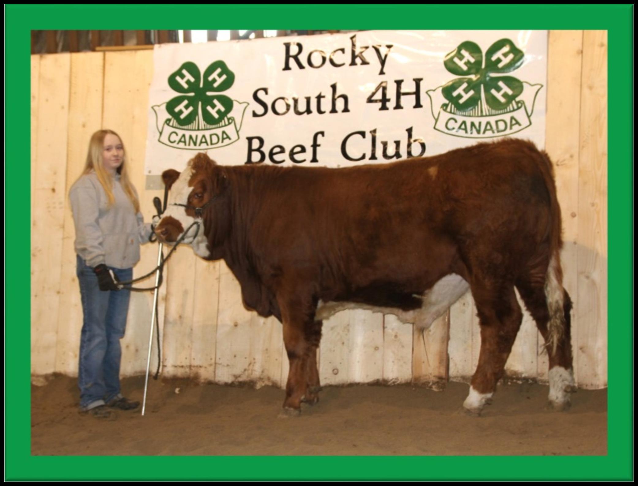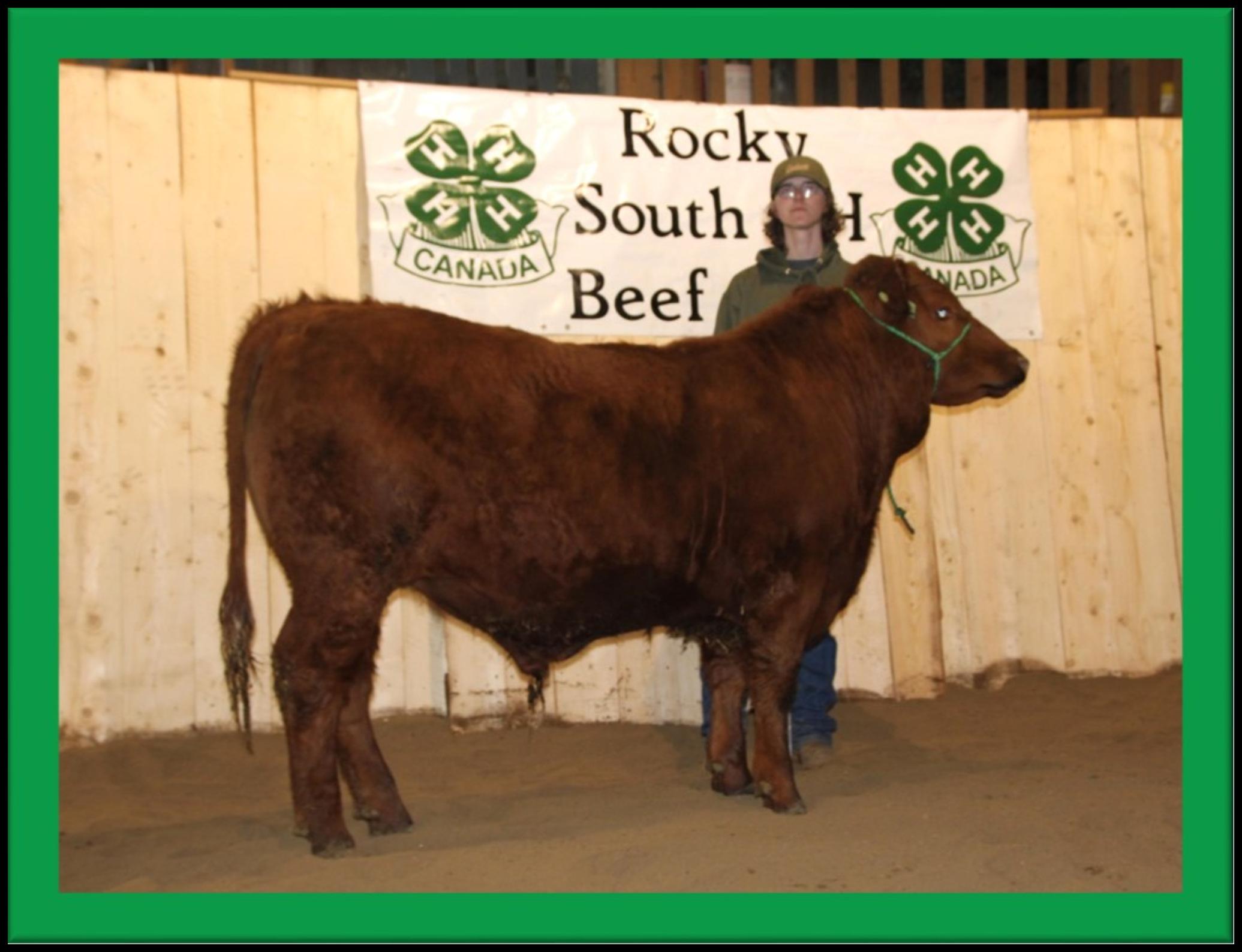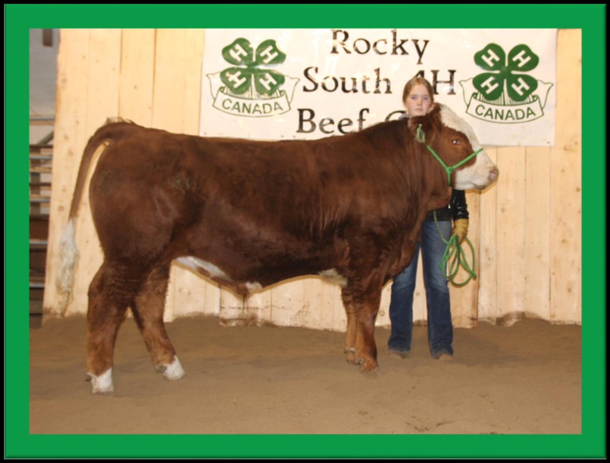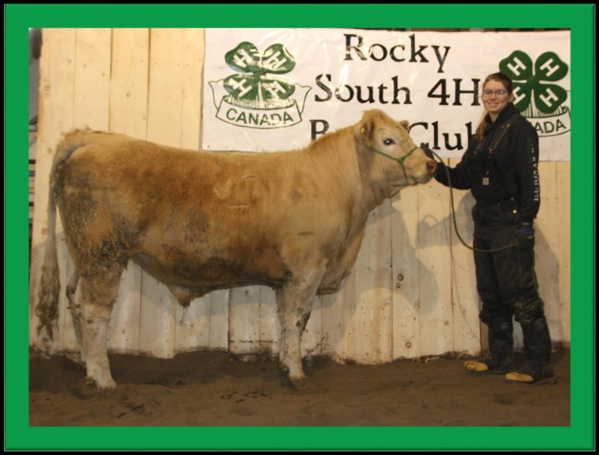 Hello everyone my name is Rayne Danielson, I am currently the treasurer for the Rocky South club and this is my third and final year in 4-H. My steer this year is named Kevin and he is a Simmental, Angus cross from our home raised herd. I would like to give a big thank you to all of our last year’s buyers and the future ones.