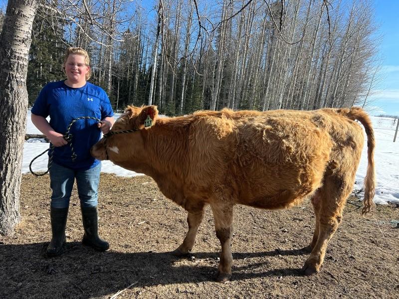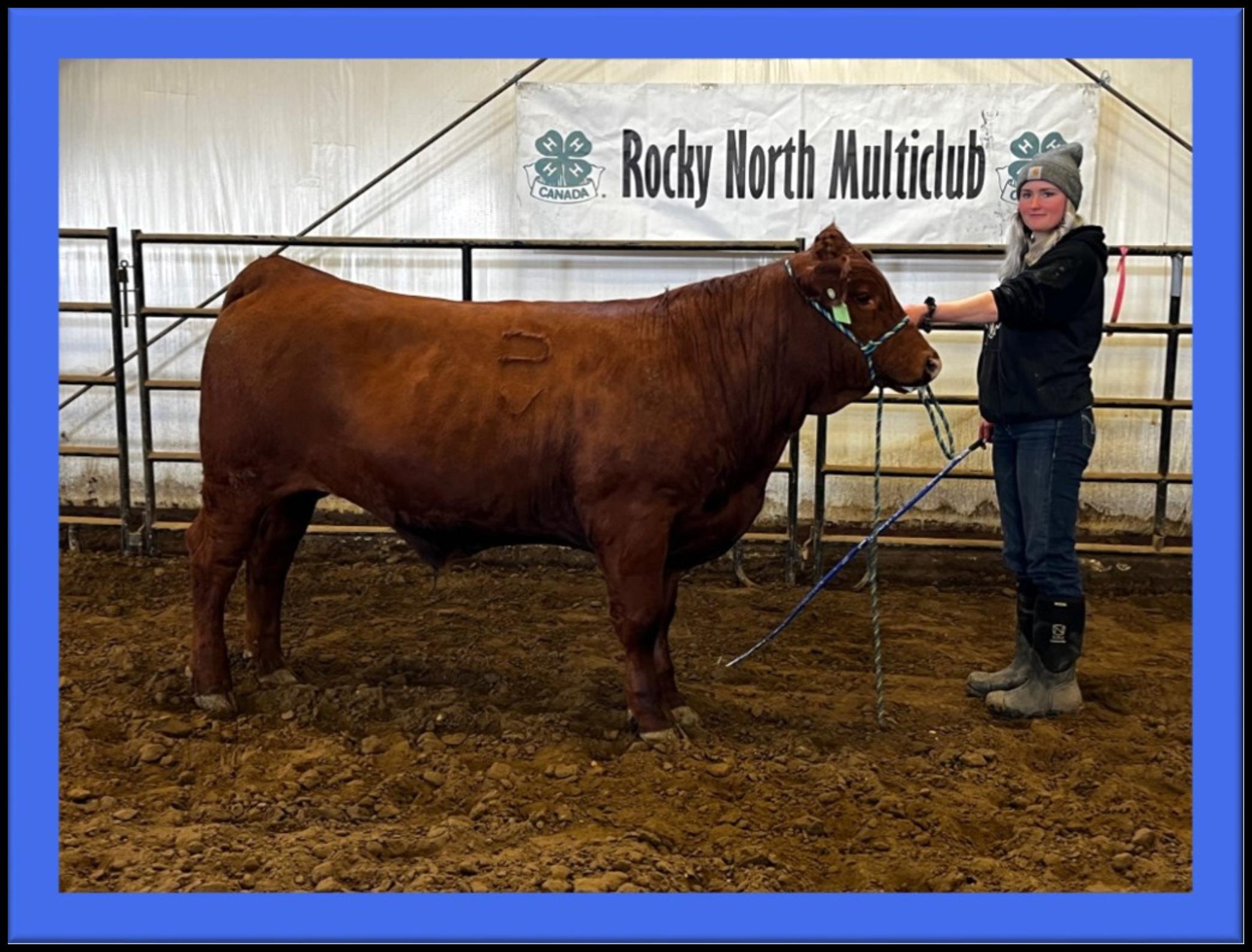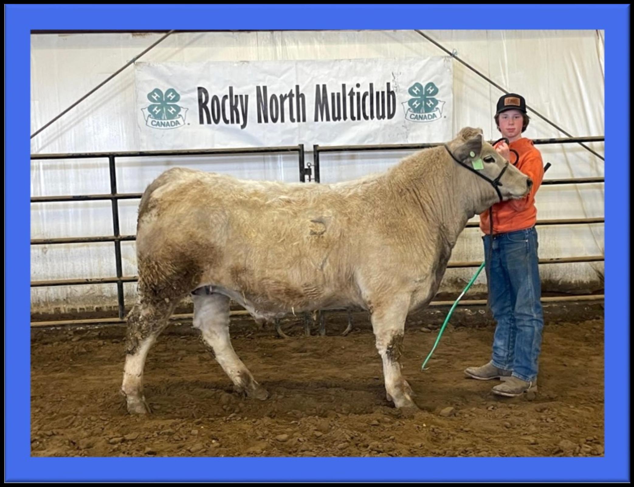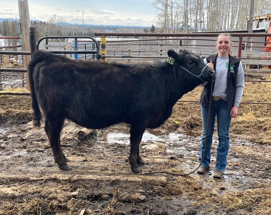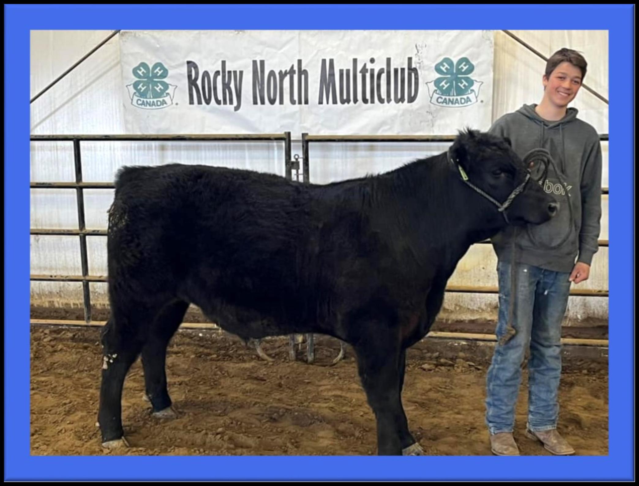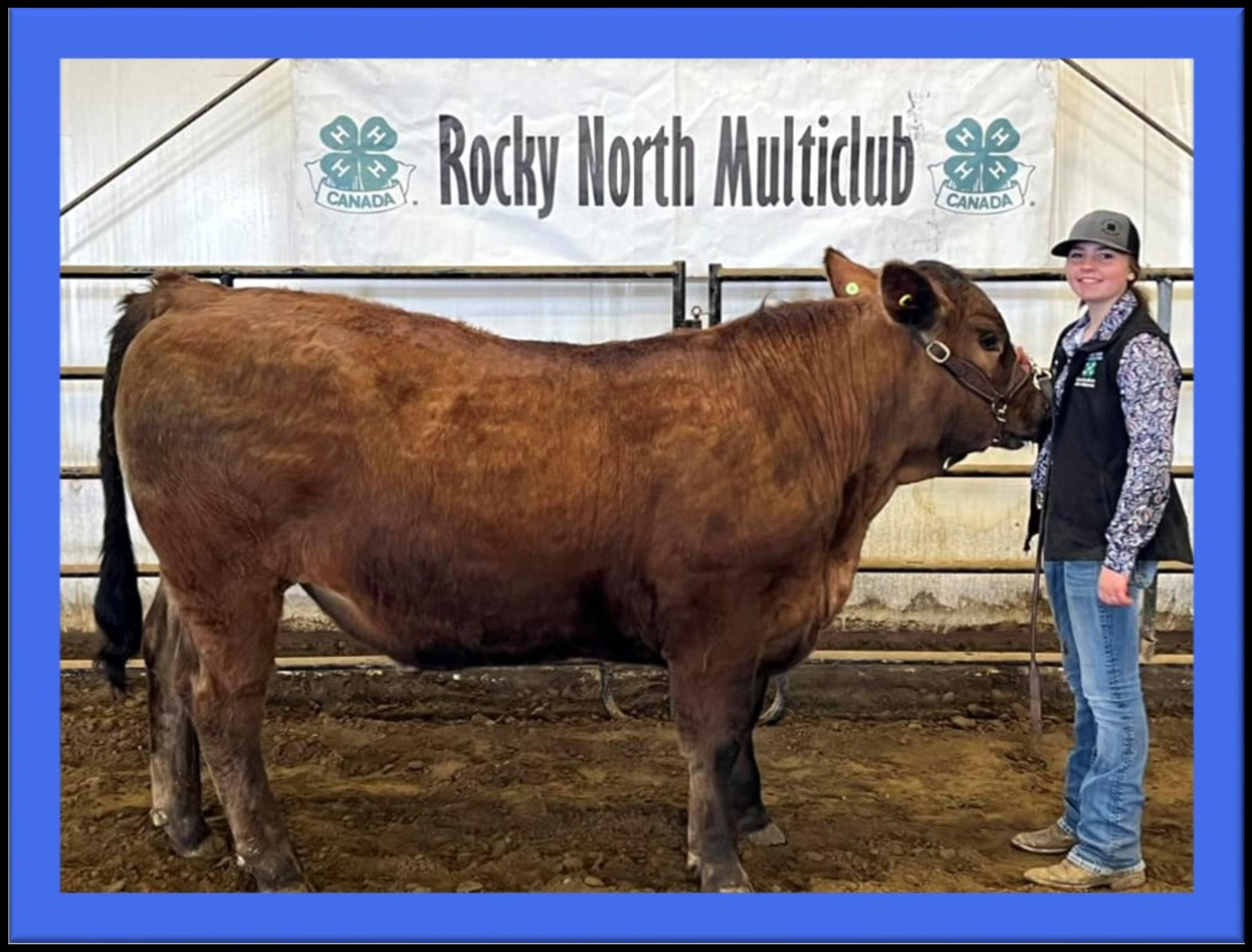 Good day folks! My name is Ben Duffin, and I am the president of the Rocky North 4-H Multi Club. This is my 9th year and 9th steer with the club. My steer’s name is Hank, and he is an Angus/ Simmental cross. He weighed 603 pounds at weigh in and has been gaining nicely since. Hank started out a little rowdy but has since quieted down a lot. Some of my hobbies include welding, mechanics, trucks, tractors, and anything with an engine. Would also like to send a big thanks to the Riverstone Vet Clinic for purchasing last year’s steer! Hope to see you at the show!