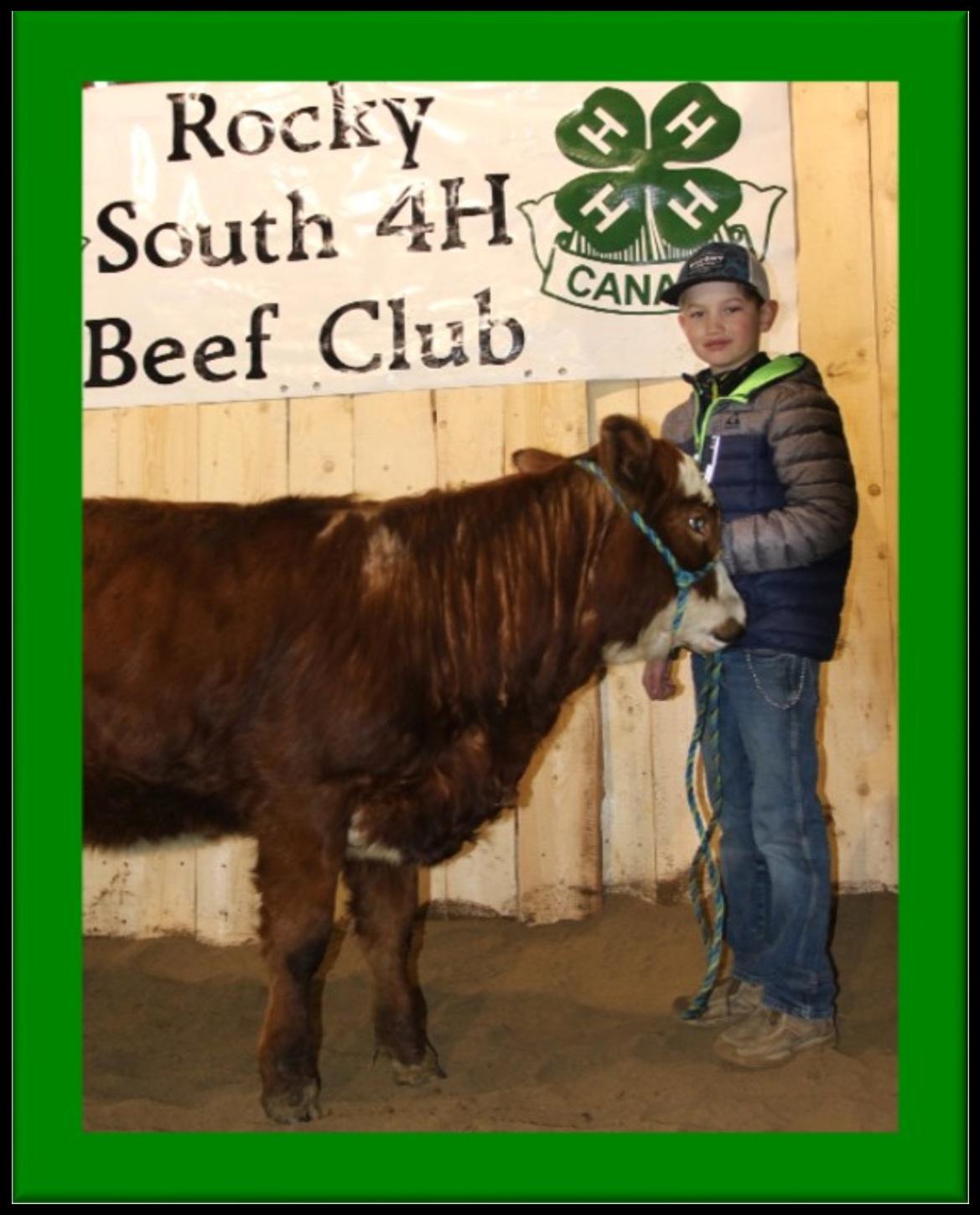 Hi, my name is Jack Lobley. I am 8 years old and this will be my third and final year as a Cleaver Kid in the Rocky South 4-H Beef Club. I really enjoy being outside on my skidoo and going fishing with my family. I am also learning to play the guitar. Unfortunately, my project hasn’t been born yet but I am really looking forward to our calving season starting this year so I can pick a really great project to show as a Cleaver and to use next year as my first market steer. Thank you so much for supporting our show and sale.