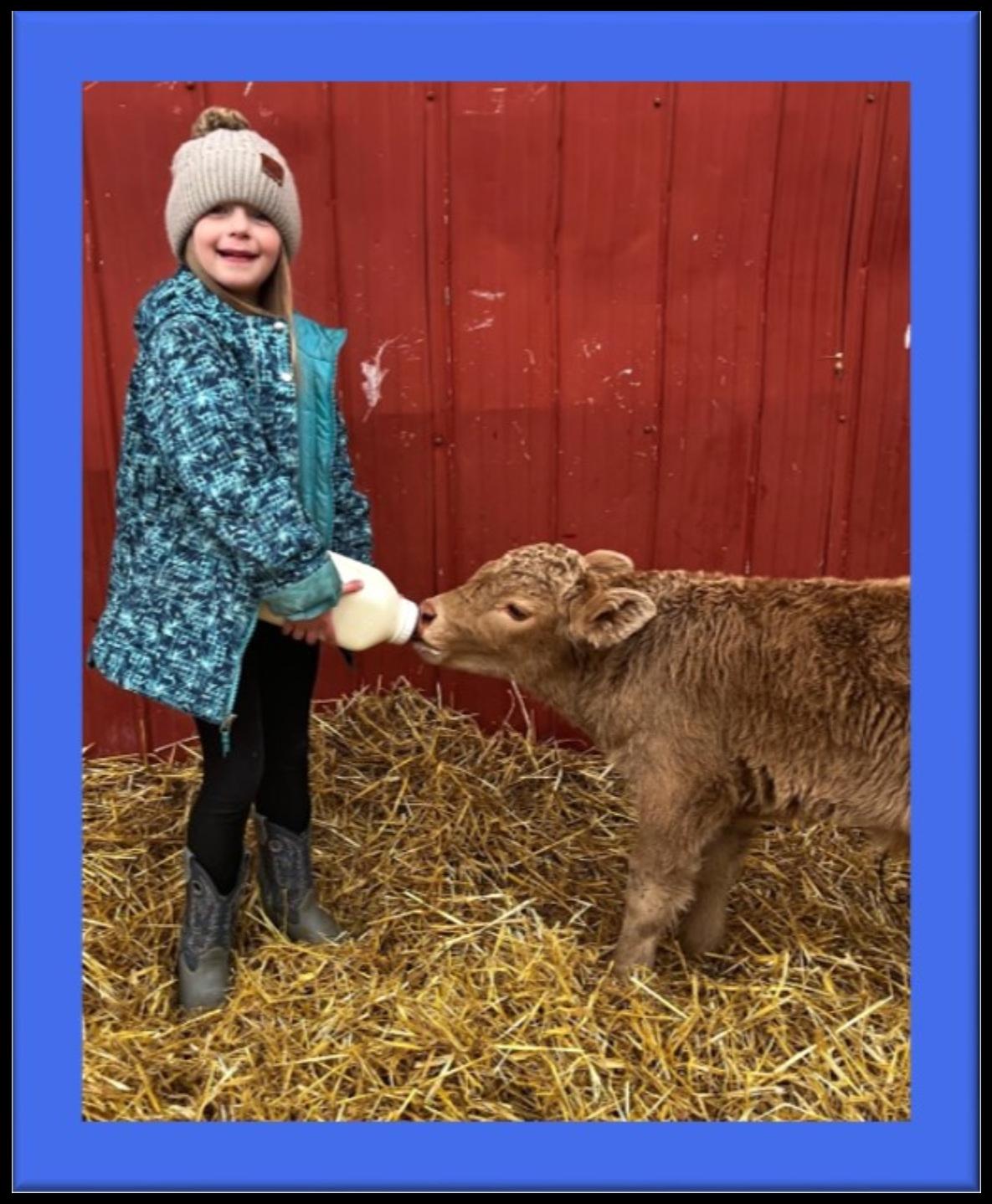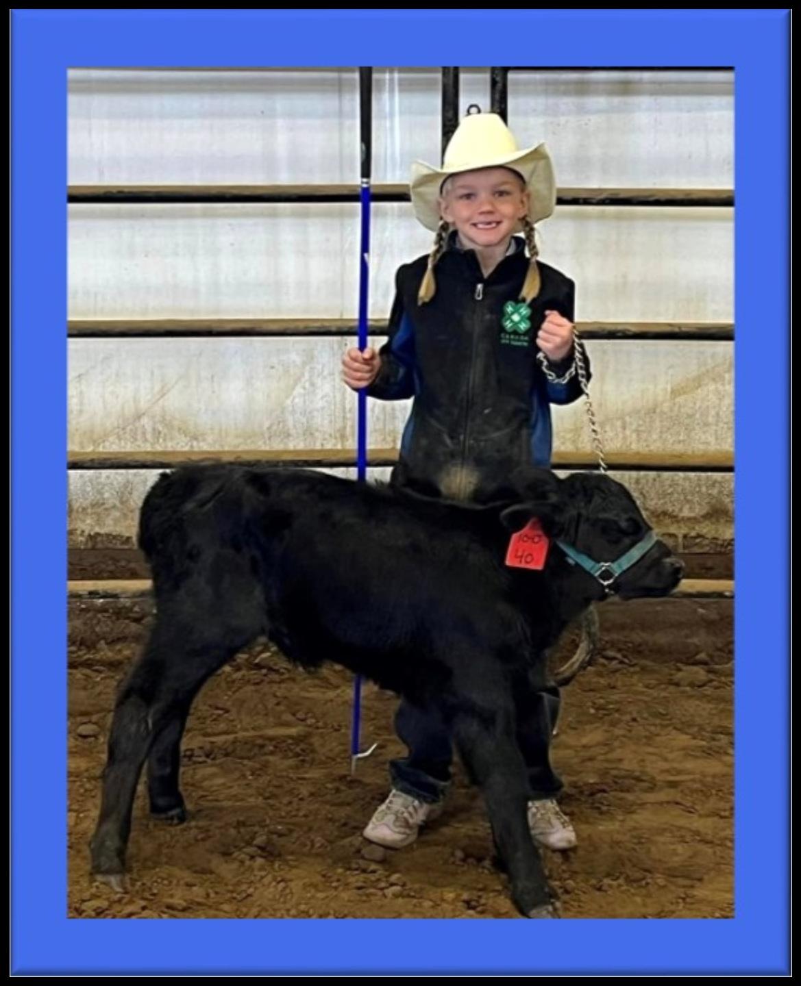 Hey I am Kynzly and this is my first year as a Cleaver kid in 4-H, I am 7 years old. My favourite thing to do is gymnastics and I am currently working on getting my next skill, a back handspring! My calf is Lester, he lost his mom a week after he was born and now I get to raise him. His Birthday is March 20th. I bottle feed him a couple times a day and am teaching him to trust me. He’s still kind of scared of me and I think he’s still missing his mom. I really like being able to spend time with him and can’t wait to show him off. He’s pretty little yet. At Mini Show he weighed 86 lbs!