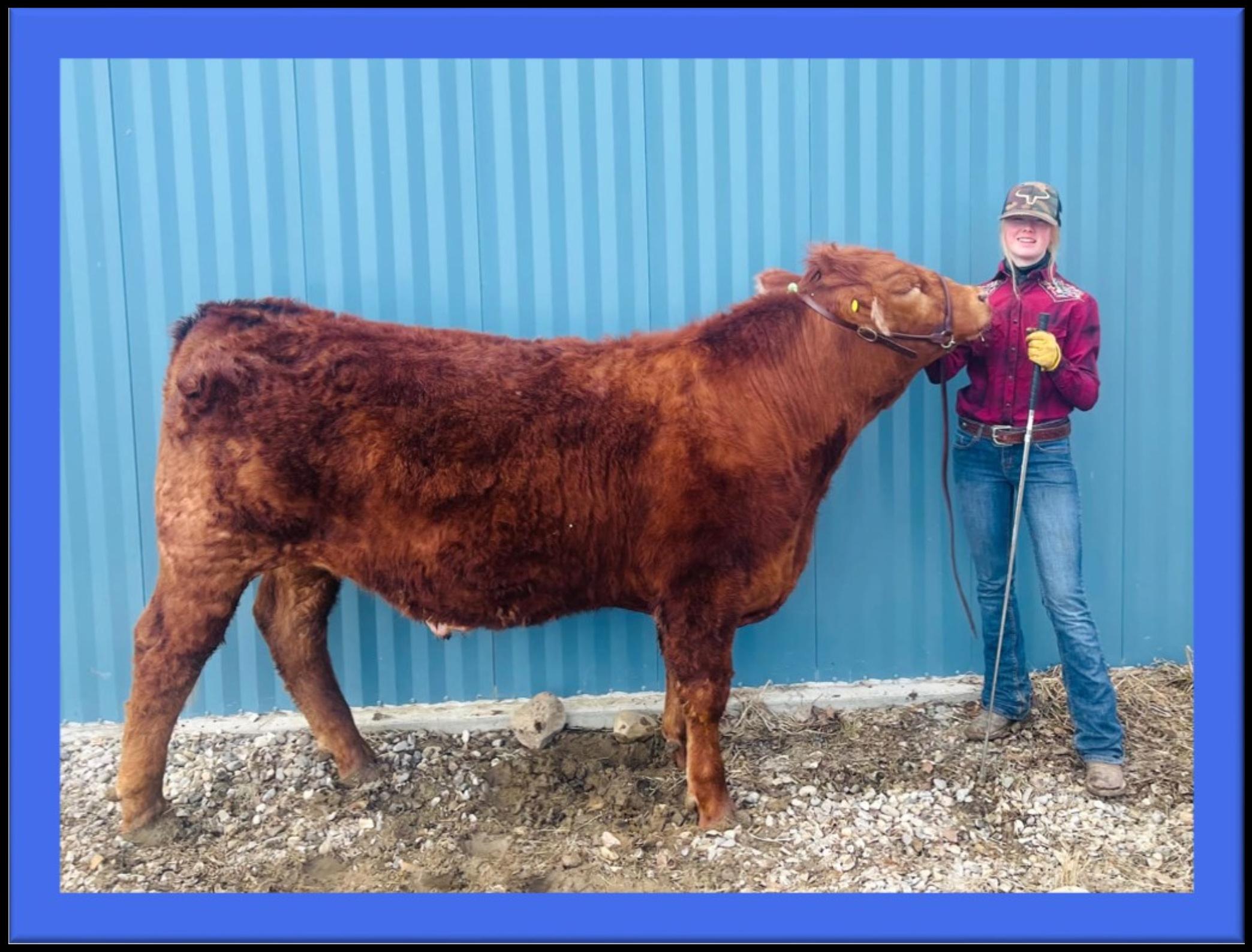 Hi there my name is Kallie Gerdung and this is my steer Phoenix. I have been in the Rocky South 4-H Beef Club for nine years. I have purchased my Charolais Cross steer “Phoenix” from Gerald and Joyce Willsie. Phoenix is an amazing steer even though he runs away sometimes when I am petting him down. Phoenix is one of those steers, that If you scratch him and then just stand straight he will smell you and then give you a big slobbery kiss on the face. At Show and Sale I would like my steer to weigh 1400. I would like to give a big shout out to my buyer Jayme Hunter who purchased my Steer last year.