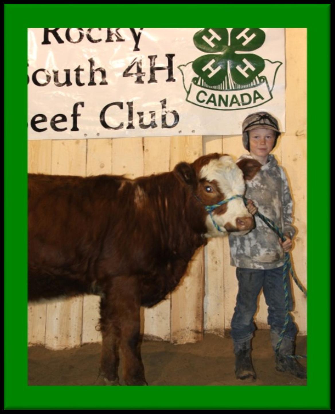 Hello, my name is Barrett Forster, and I am 7 years old. This is my second year as a Cleaver with the Rocky South 4-H Beef Club. My calf this year is from one of our new full blood Simmental heifers. Syd is going to look pretty fancy in the sale this year he is a really nice big red boy. I really like 4-H, but I also like hockey, basketball and riding my horse, Benny. I am really excited for the sale this year.