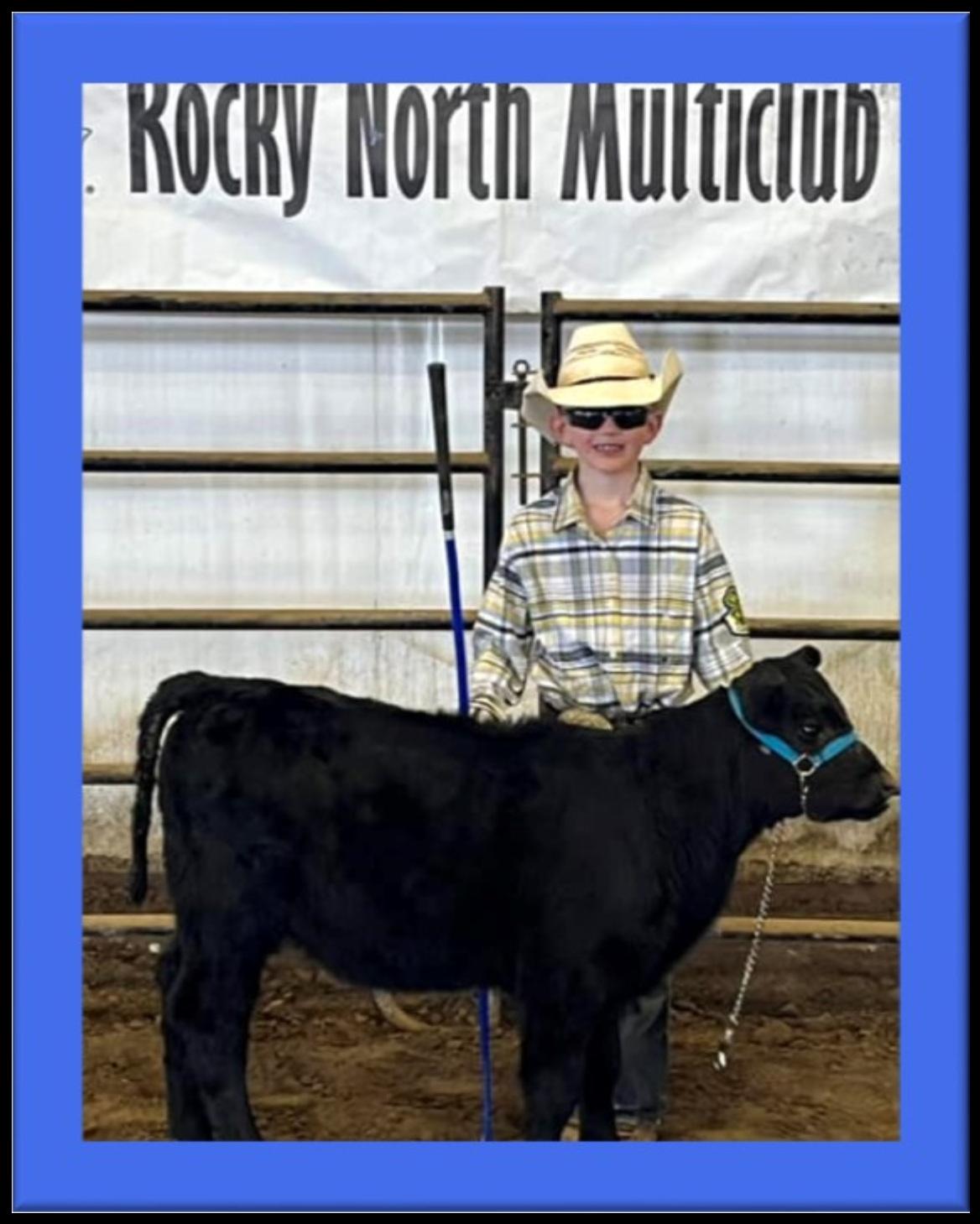Hello, my name is Kole Scott. I am 10 years old, and I am a second year Junior with Rocky South 4-H Beef Club. This is my 4th year in 4-H Beef, and this is my steer “Rango”. He is a Red Simmental I bought from Delbert Phillips near Hespero. I would like to thank all the buyers that continue to support 4-H Beef. I look forward to seeing you at our Show & Sale.
