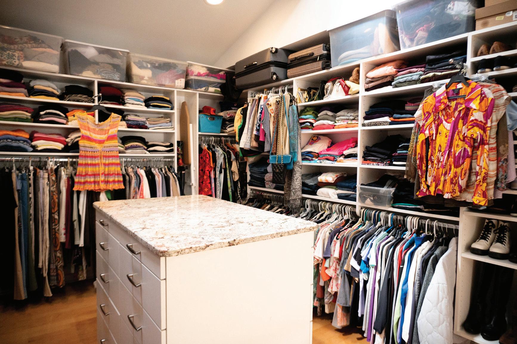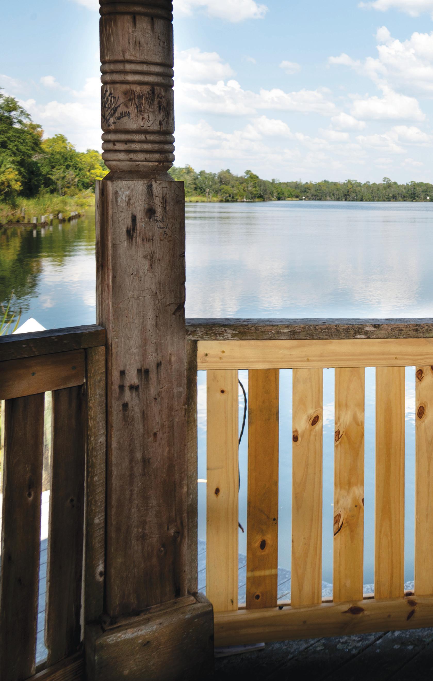 The tile in the master bath is from the ‘50s and was left over from a high-rise project in West Pensacola, nearly forgotten in the attic at the nowclosed Angelini Tile. The contractors who installed the tile started at floor level and worked their way up, stopping before they ran out. Like the rest of the house, the master bath is bathed in daylight: “I love all the natural light because we hardly ever have to turn on the lights,” Biggs said.