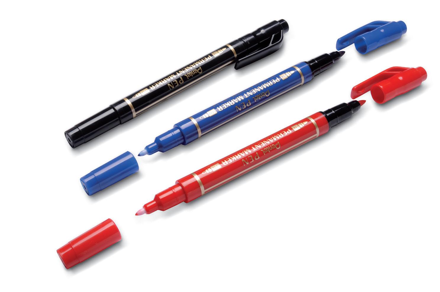 Der „Pentel Pen Twin Tip“ ist ein permanen ter Allzweck-Marker und besonders stark auf Kunststoffen. Er ist mit einer Doppelspitze ausgestattet, wobei die feinere Kunststoffspit ze leicht gefedert ist und damit je nach Druck des Anwenders extra feine bis feine Markie rungen ermöglicht. Die mittelgroße Faser spitze auf der anderen Seite des Stifts ermög licht Markierungen in mittlerer Schriftbreite.