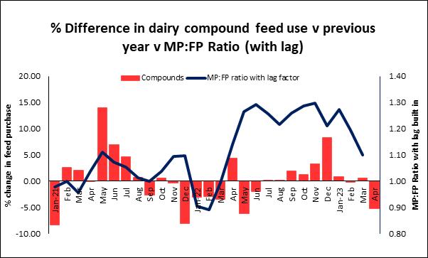 Total production of compounds, blends and concentrates, including integrated poultry units, during the month of May 2023 declined for the second year in succession to 979,100 tonnes, a decrease from the corresponding month a year earlier of 5,600 tonnes or 0.6 per cent. Moreover, this reduction dropped the current production even further below the 10 year average for the month which it fell 32,400 tonnes or 3.3 per cent below.
