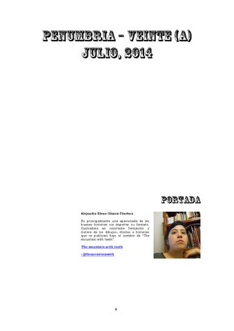 PORTADA Alejandra Elena Gámez Pándura Es principalmente una apasionada de las buenas historias sin importar su formato. Ilustradora en constante formación y Autora de los dibujos, chistes e historias que se publican bajo el nombre de "The mountain with teeth". The mountain with teeth : @themountainwith