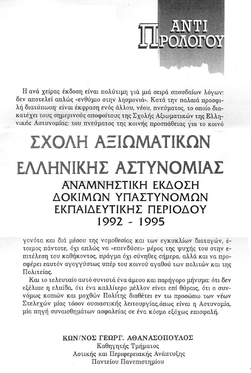 -Prof Const. GE. ATHANASOPOULOS: Notions d’ investissement et problemes de developpement. CAHIERS de L’ A.C.E. ISSN 0767-9394. N. 3. Paris, 1991………………………. 340 -Prof. Const. GE. ATHANASOPOULOS: Administrative Law. Athens. 2014……………………… 341 -Καθηγητής