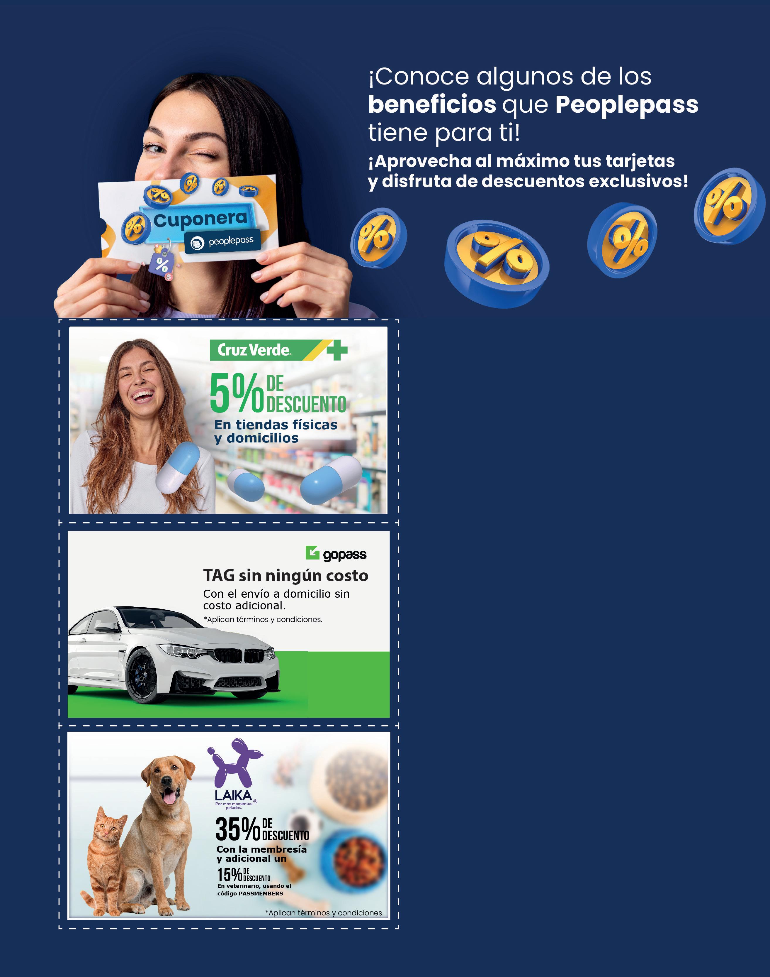 Obtén un 5% de descuento en tiendas físicas y domicilios pagando con alguna de las tarjetas Peoplepass Bienestar, Market, Zafiro y Zafiro Plus.
